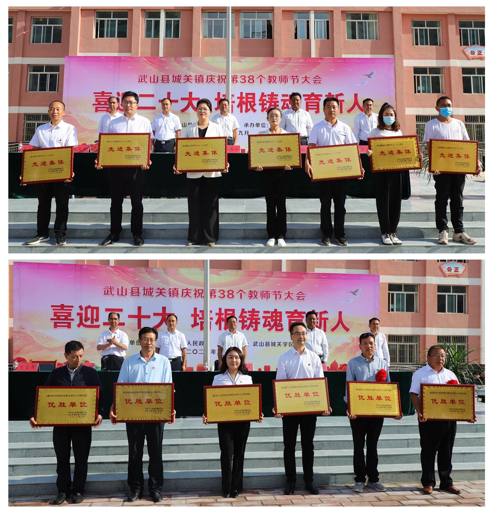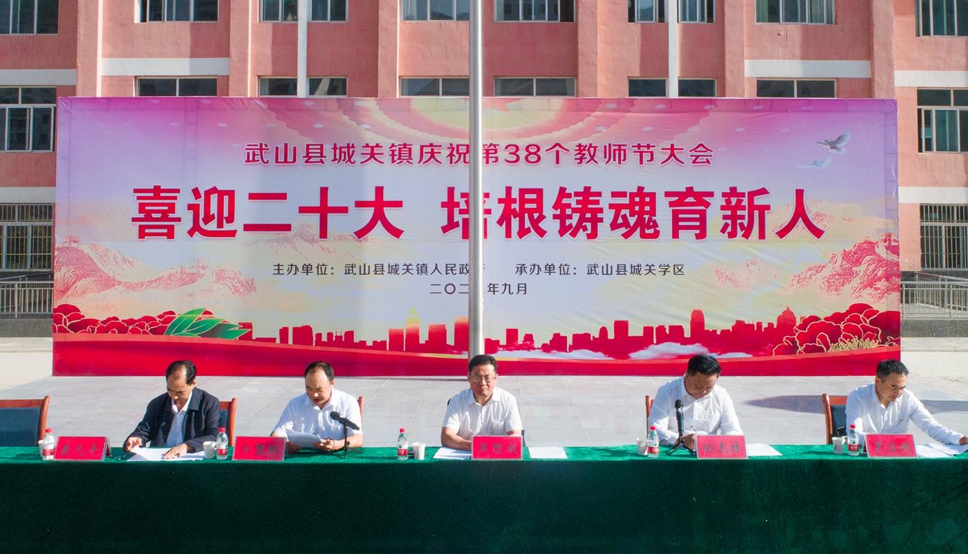 武山县融媒体中心9月9日讯(记者 车彤瑶 兰红红 杜娟)9月7日,武山县城关镇召开“喜迎党的二十大、培根铸魂育新人”庆祝第38个教师节暨表彰大会,表彰全镇教育战线上涌现出的先进单位和先进个人,动员全镇上下大力营造尊师重教浓厚氛围,激励广大教师和教育工作者坚定自信、振奋精神,立德树人、铸魂育人,为奋力谱写城关高质量发展绚丽篇章作出新的更大的贡献。