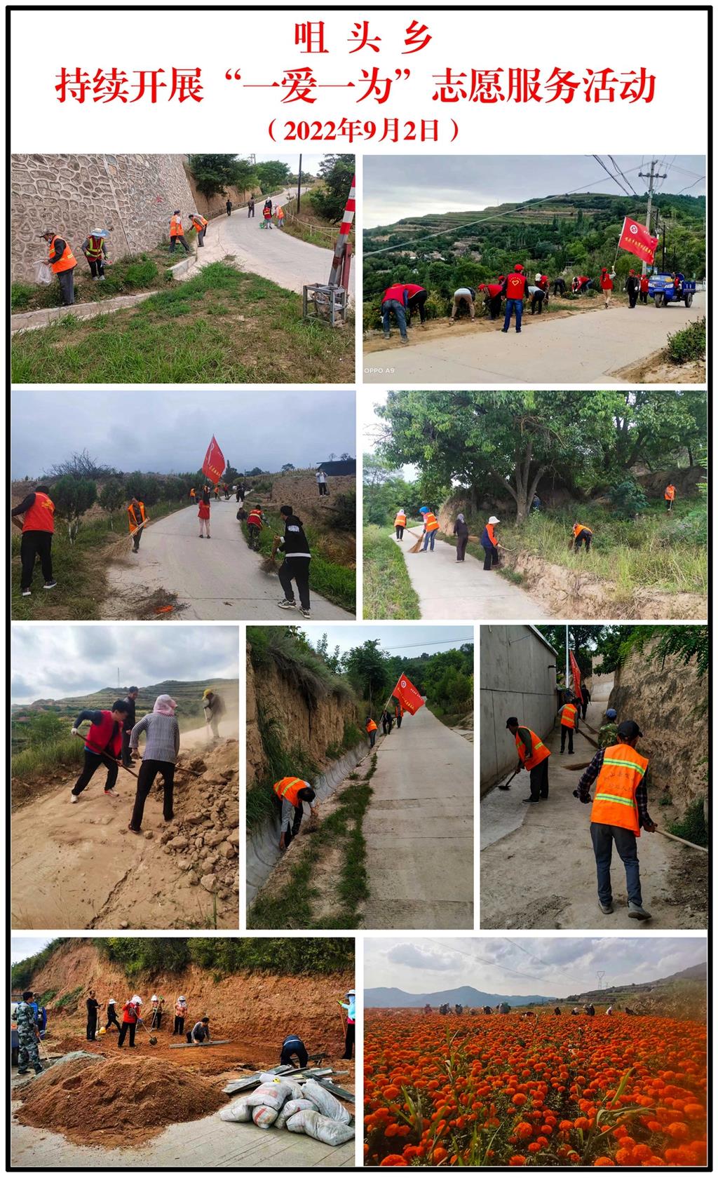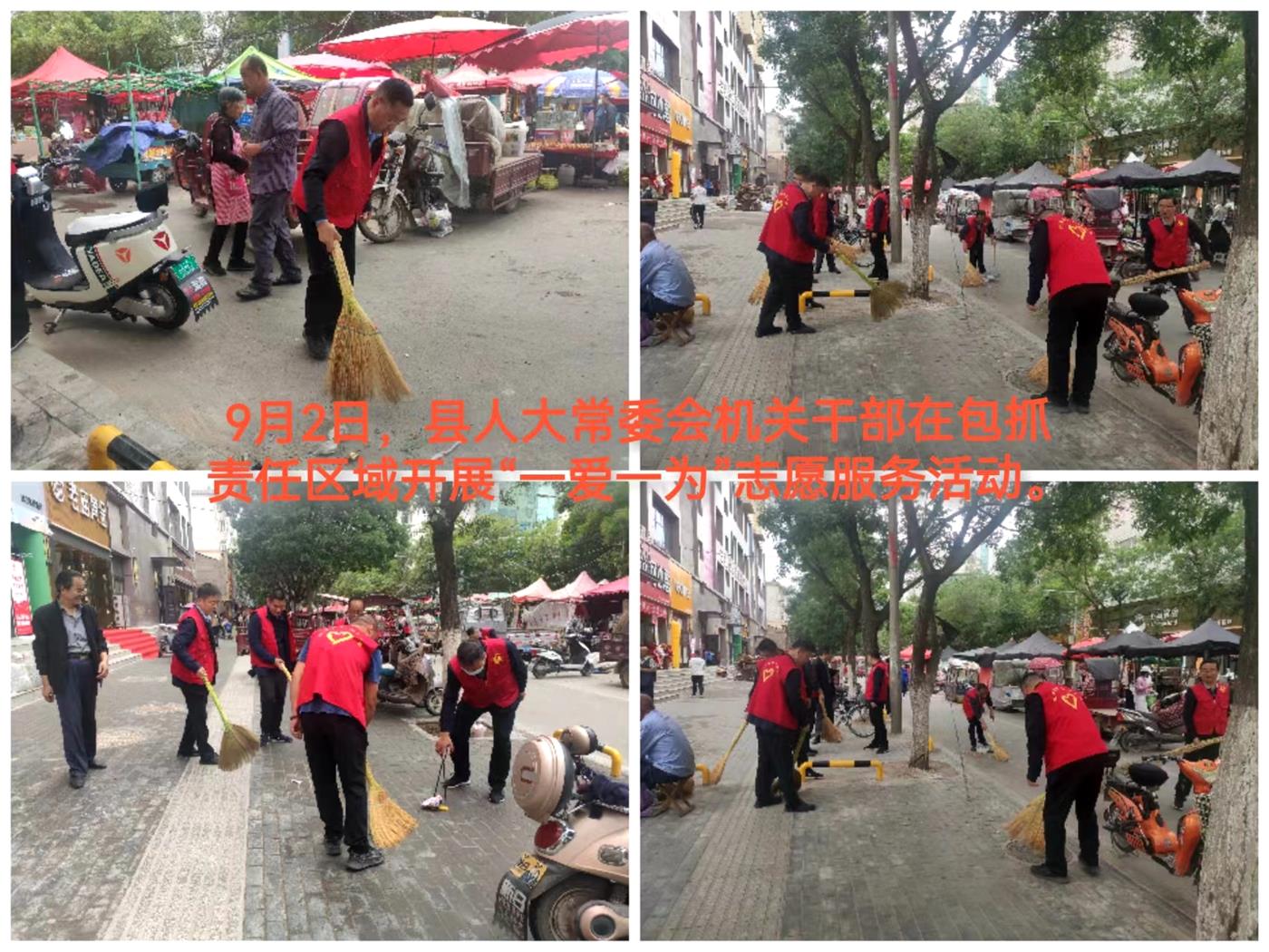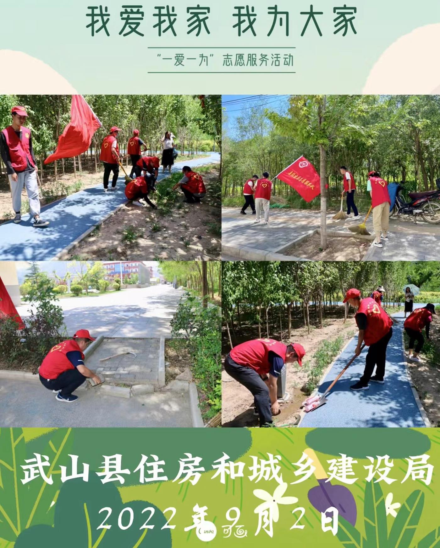 武山县融媒体中心9月2日讯(记者 唐文斌 兰红红)9月2日,武山县各乡镇、各部门、各单位结合9月份主题党日,组织志愿者到各自区域开展“一爱一为”志愿服务活动,让主题党日活动更加“有滋味”,让志愿服务活动更加“有温度”,进一步激发文明实践新活力。