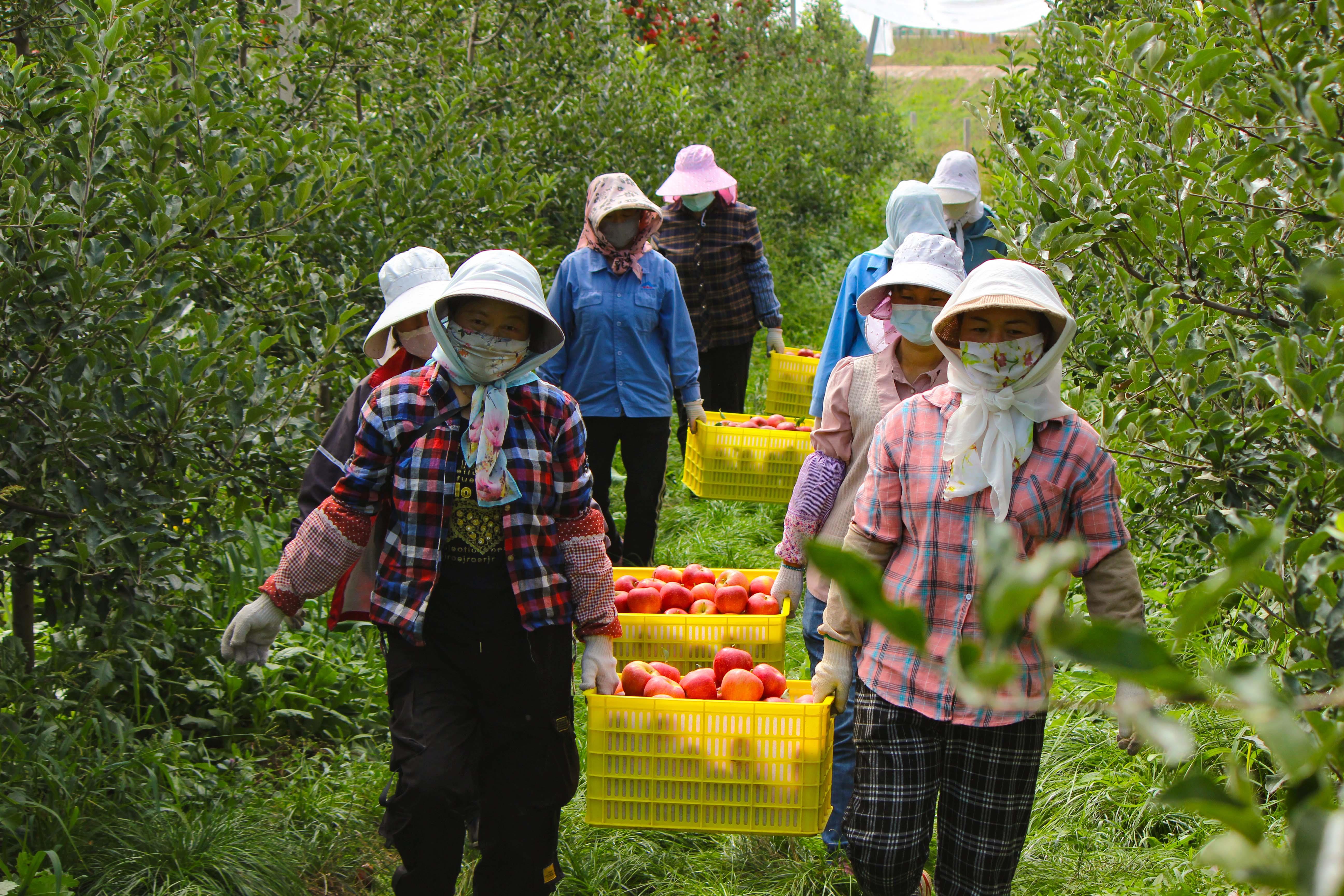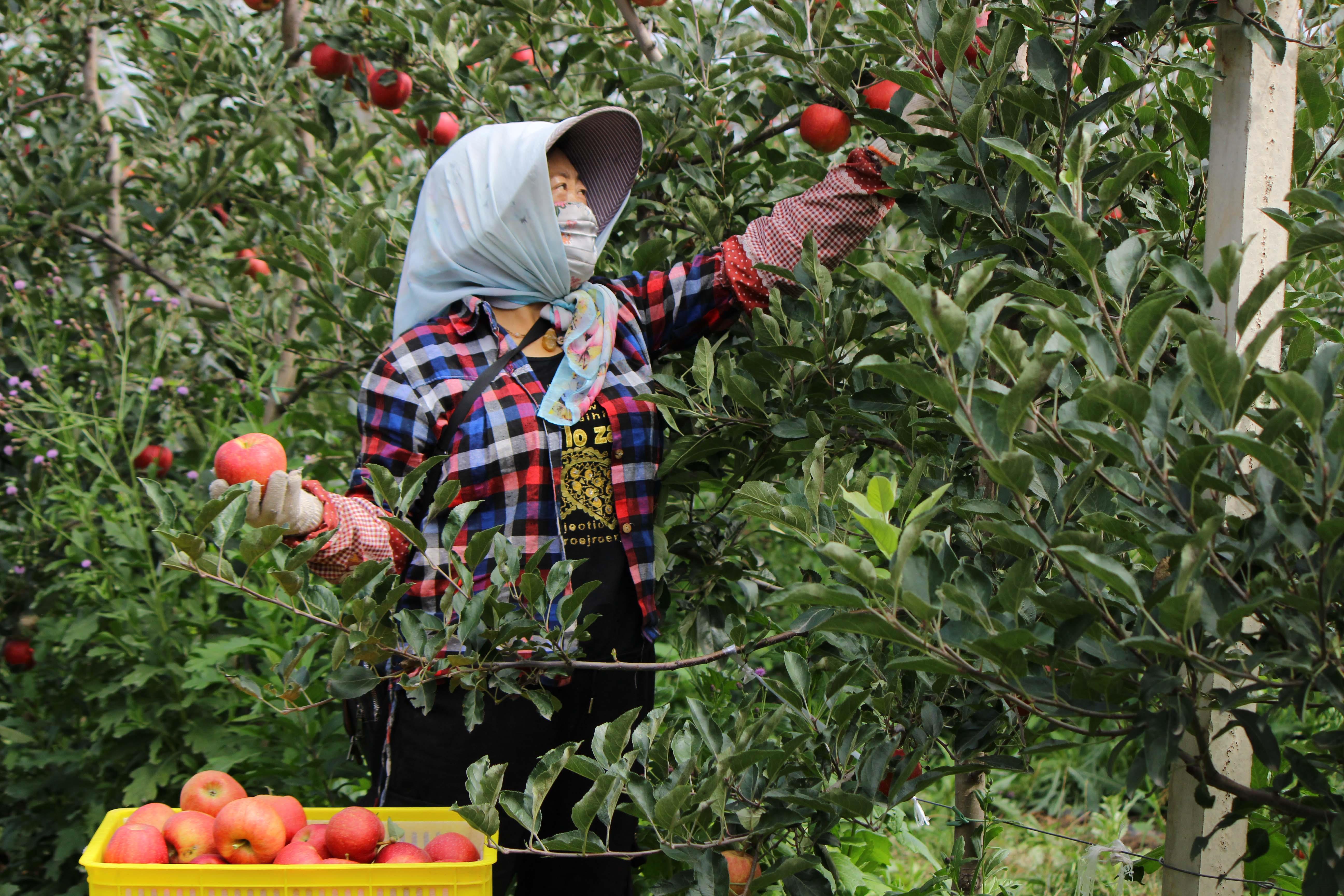 苹果丰收,宋刚刚很忙,周边村庄的群众也忙了起来,赵坪村村民杨菊英每天早上来果园采摘苹果。“果园建在我们村头,一年四季我在里面打工挣钱。平常我们就是拉枝、扭枝、除草,现在苹果成熟了,就摘苹果,离家门口近,就有个小收入。”杨菊英说,除了打工挣钱,自家的半亩地还租给了园区,又有分红,“苹果给了我三份收入”。
