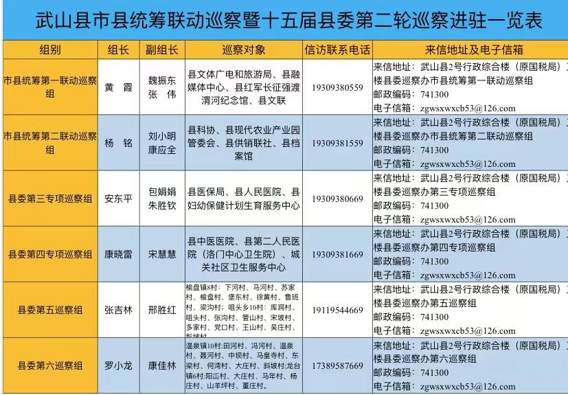 按照省市巡视巡察上下联动和十五县委第二轮巡察工作统一安排部署,8月29日至9月1日,武山县市县统筹联动巡察暨十五届县委第二轮巡察6个巡察组先后完成8个县直单位、6个医疗卫生领域单位、4个乡镇34个村的巡察进驻工作。