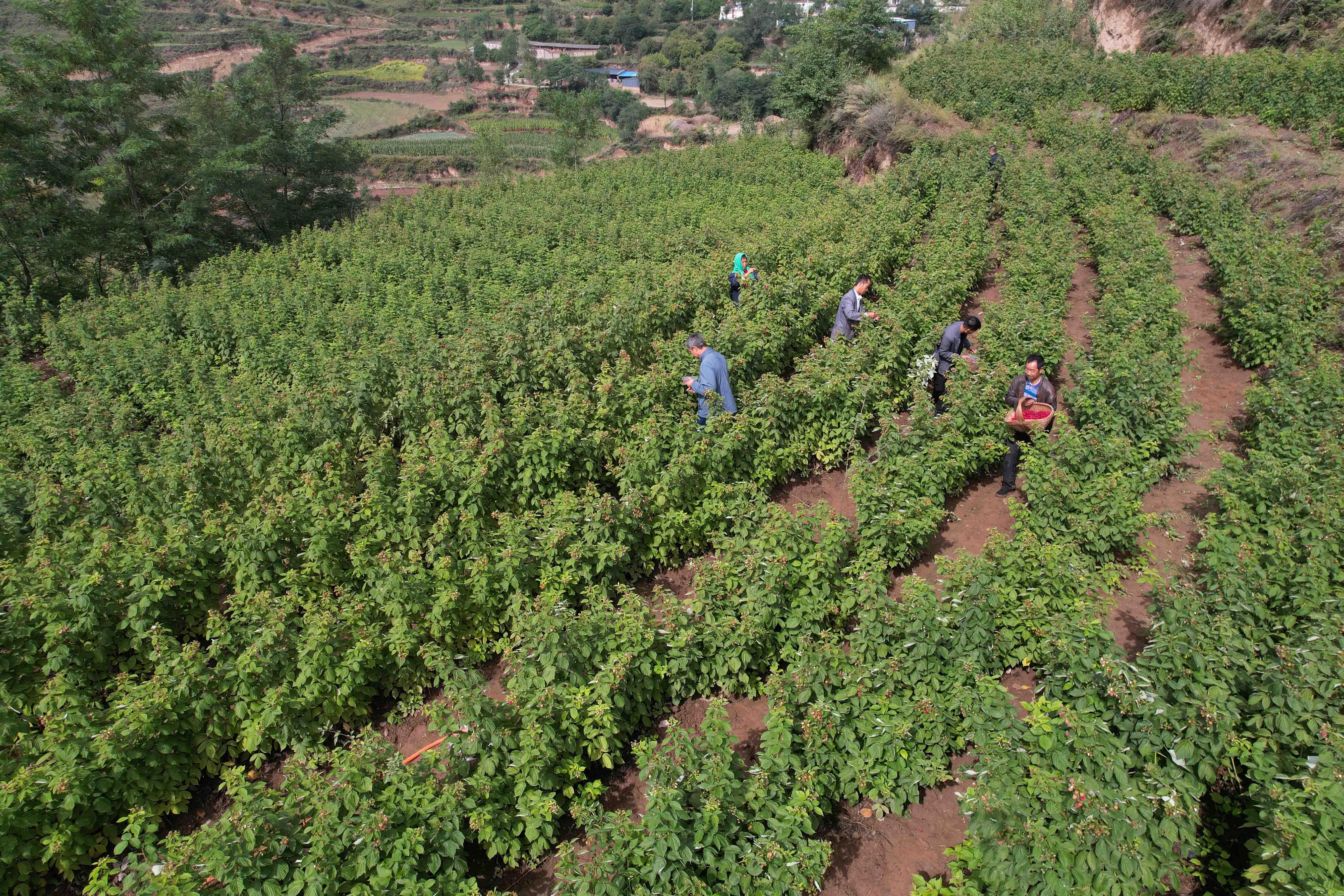 “看这果子大的,今年这效益肯定比去年好,看来还是要用心管理。”魏小平一边采摘树莓果实,一边对旁边的丈夫和儿子说,“多亏了你们上进去的那一车羊粪,还有前段时间干旱时每天的浇水。”
