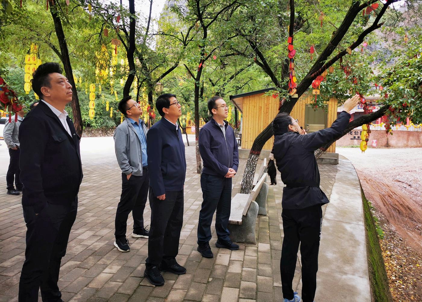 调研组一行深入到水帘洞鲁班山大景区,就景区建设运营与活动开展情况进行现场调研指导,对水帘洞鲁班山大景区建设和祈福文化旅游资源给予充分肯定。