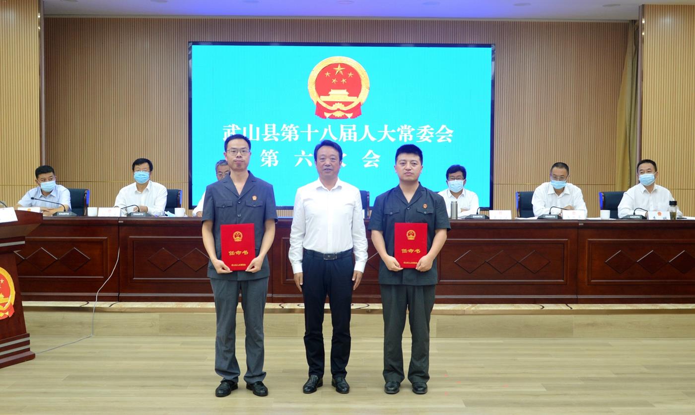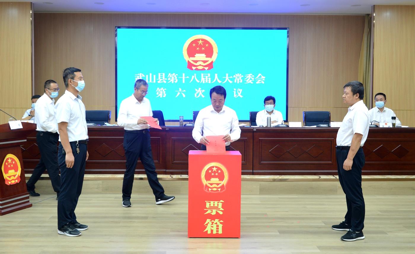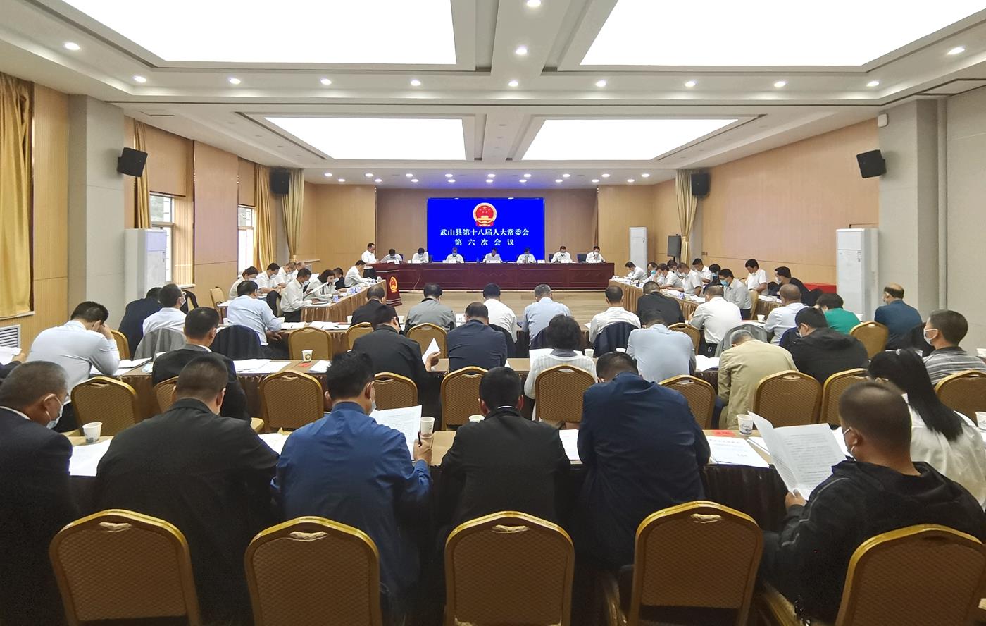 武山县融媒体中心8月29日讯(记者 彭雪)8月29日,武山县第十八届人大常委会召开第六次会议。县人大常委会主任孙德银、副主任骆育喜分别主持第一、第二次全体会议。县人大常委会副主任李忠平、郭海涛等22名常委会组成人员出席会议。县委常委、副县长吴学深,县人民法院院长李琳,县人民检察院检察长赵少华,县监察委员会、县政府办公室、发改局、教育局、科技局、工信局、公安局、民政局、司法局、财政局、人社局、自然资源局、住建局、交通运输局、水务局、农业农村局、商务局、文旅局、卫健局、审计局、林草局、市场监管局、统计局、乡村振兴局、医保局、执法局、畜牧兽医事务服务中心、融媒体中心、招商引资中心、生态环境局、税务局等单位负责人,洛门镇、温泉镇人大主席,部分市、县人大代表列席会议。