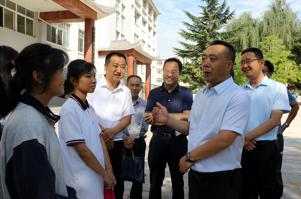 王新强通过实地查看、现场听课、座谈交流等方式,详细调研了解学校教育教学、学校建设、师资配备、学生住宿就餐、新生军训等情况。他强调,县教育主管部门要不断深化教育教学改革,深入研究教育改革发展中出现的新情况、新问题,着力在提升教育教学质量上下功夫,建强学校领导班子,加强教师队伍建设,优化教育资源配置,统筹推进教育均衡发展。各级各类学校要抓好教育教学和疫情防控、校园安全等各项工作,坚持精细化管理,加强校园文化建设,强化理想信念教育和爱国主义教育,努力培养德智体美劳全面发展的社会主义建设者和接班人。广大教师要牢记为党育人、为国育才使命,深入钻研业务,潜心教书育人,真心关爱学生,争做有理想信念、有道德情操、有扎实学识、有仁爱之心的“四有”好老师。广大学生要树立远大志向,坚定理想信念,珍惜学习机会,永怀感恩之心,认真学习科学文化知识,加强体育锻炼,努力成为可堪大用能担重任的栋梁之才。