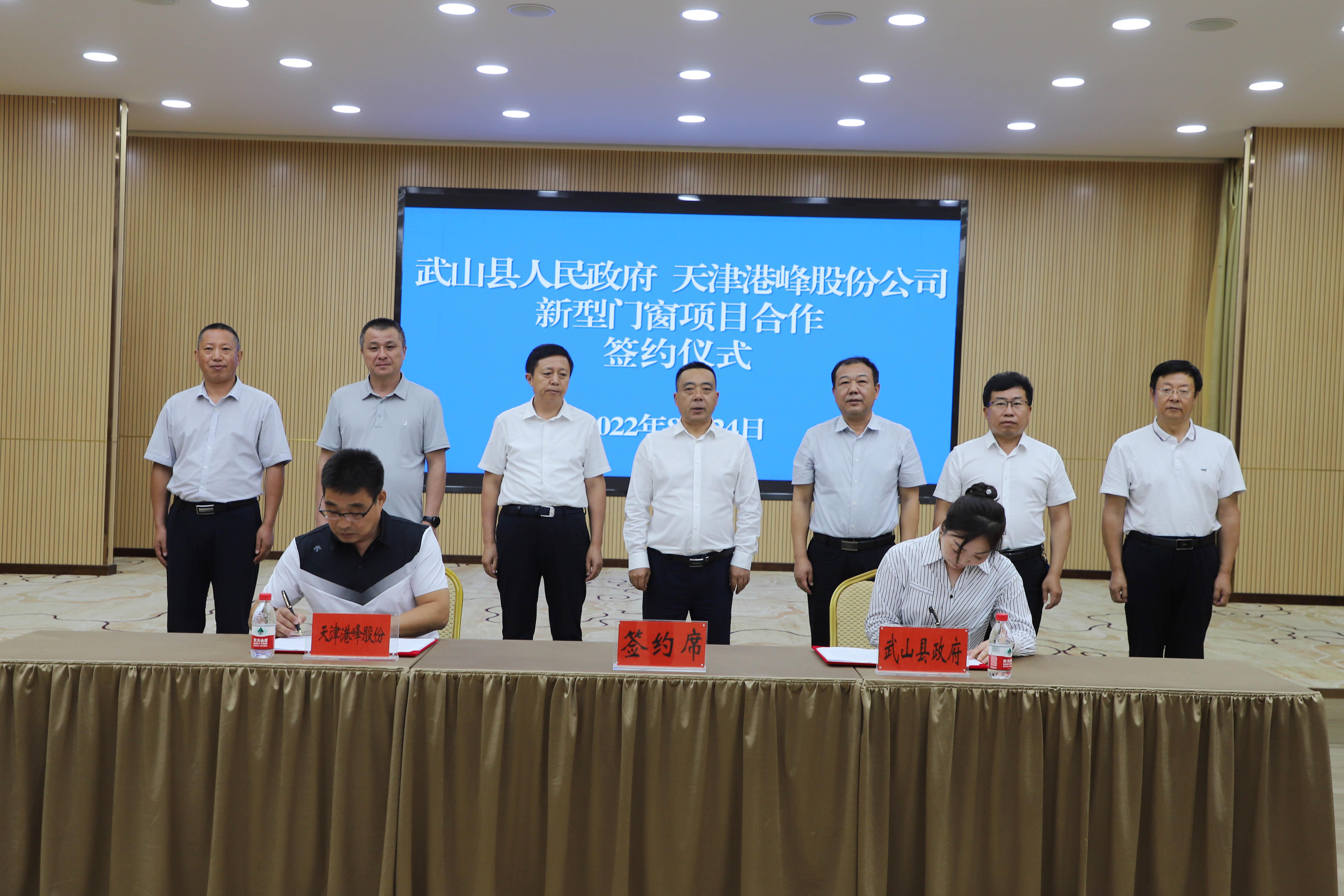 8月24日,武山县人民政府与天津港峰门窗制品股份有限公司举行项目签约仪式。县委书记王新强出席并讲话,县委副书记马福胜主持签约仪式。县委常委、副县长吴学深,县人大常委会副主任郭海涛,副县长刘莉娜,县政协副主席吴健明,天津市津南区咸水沽镇党委书记朱凤起,天津市津南区发改委副主任张华伟,天津港峰门窗制品股份有限公司董事长李恩山等参加签约仪式。