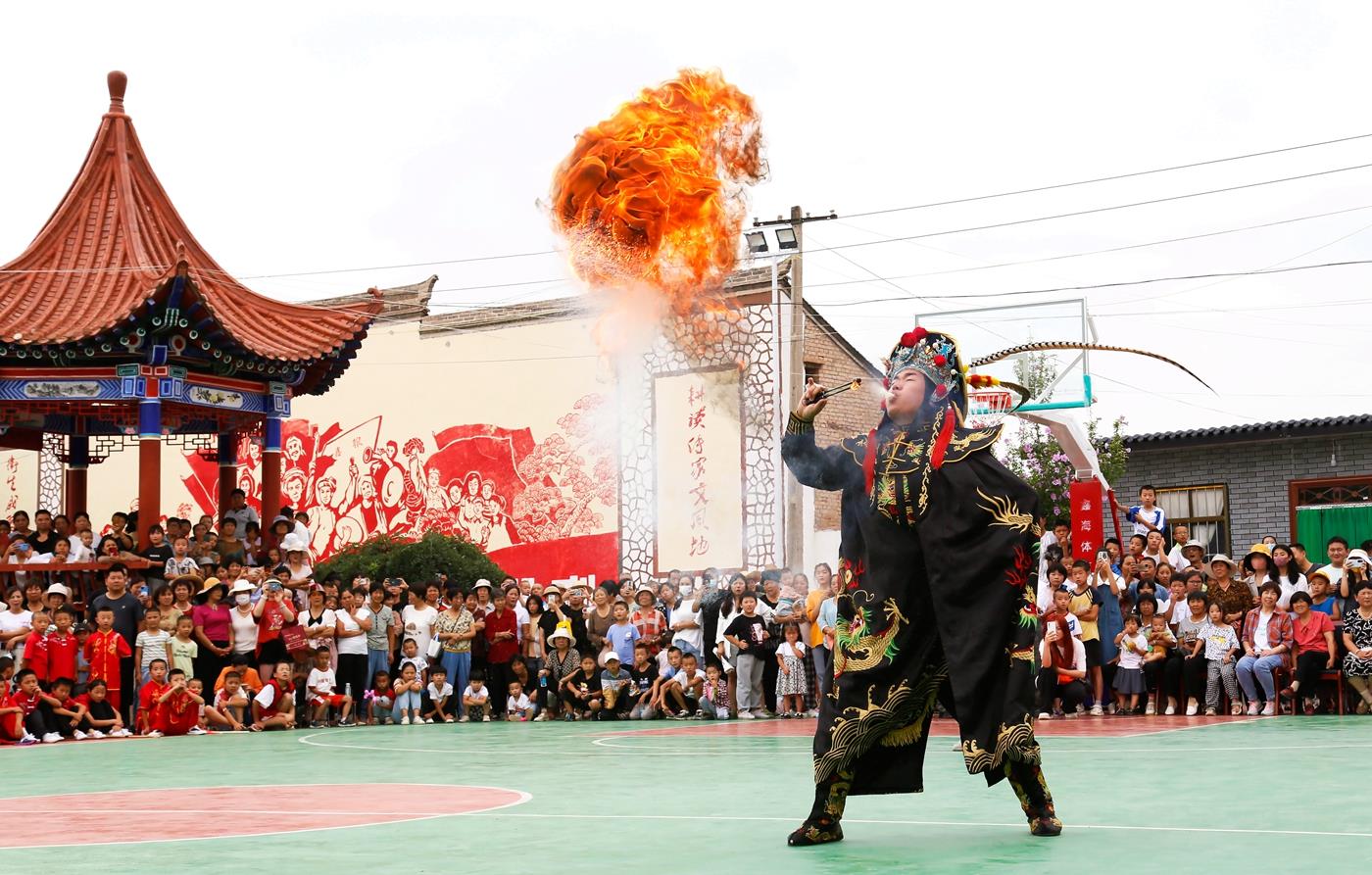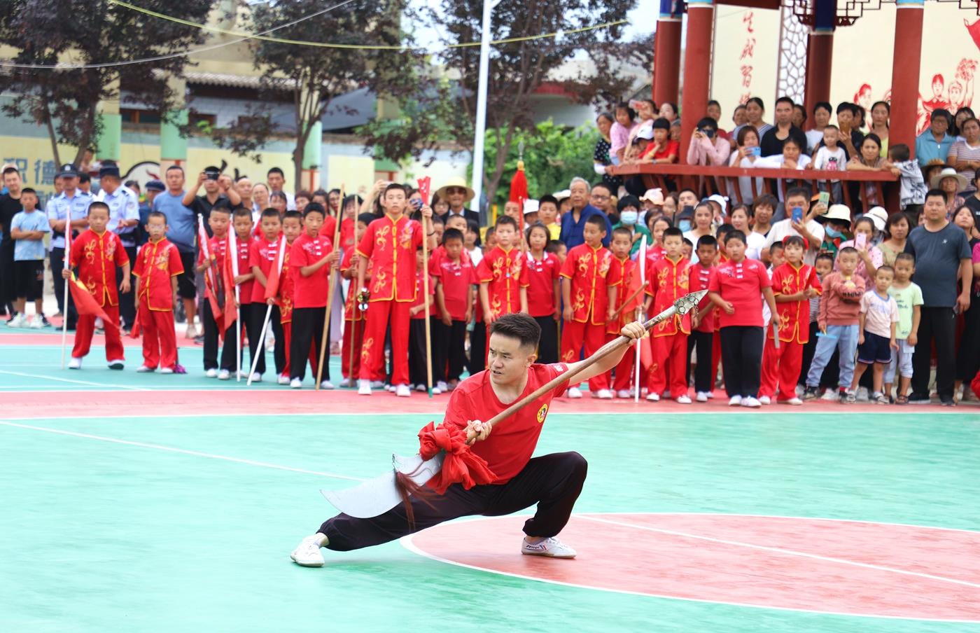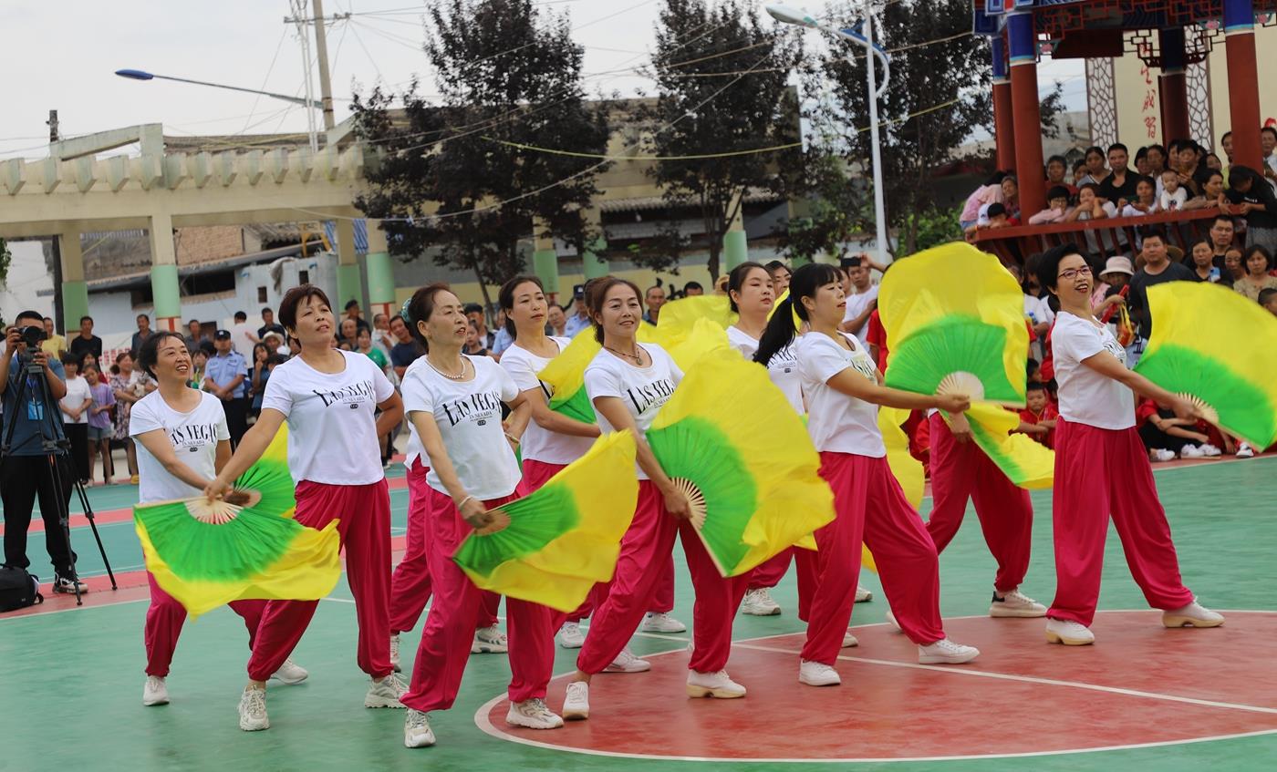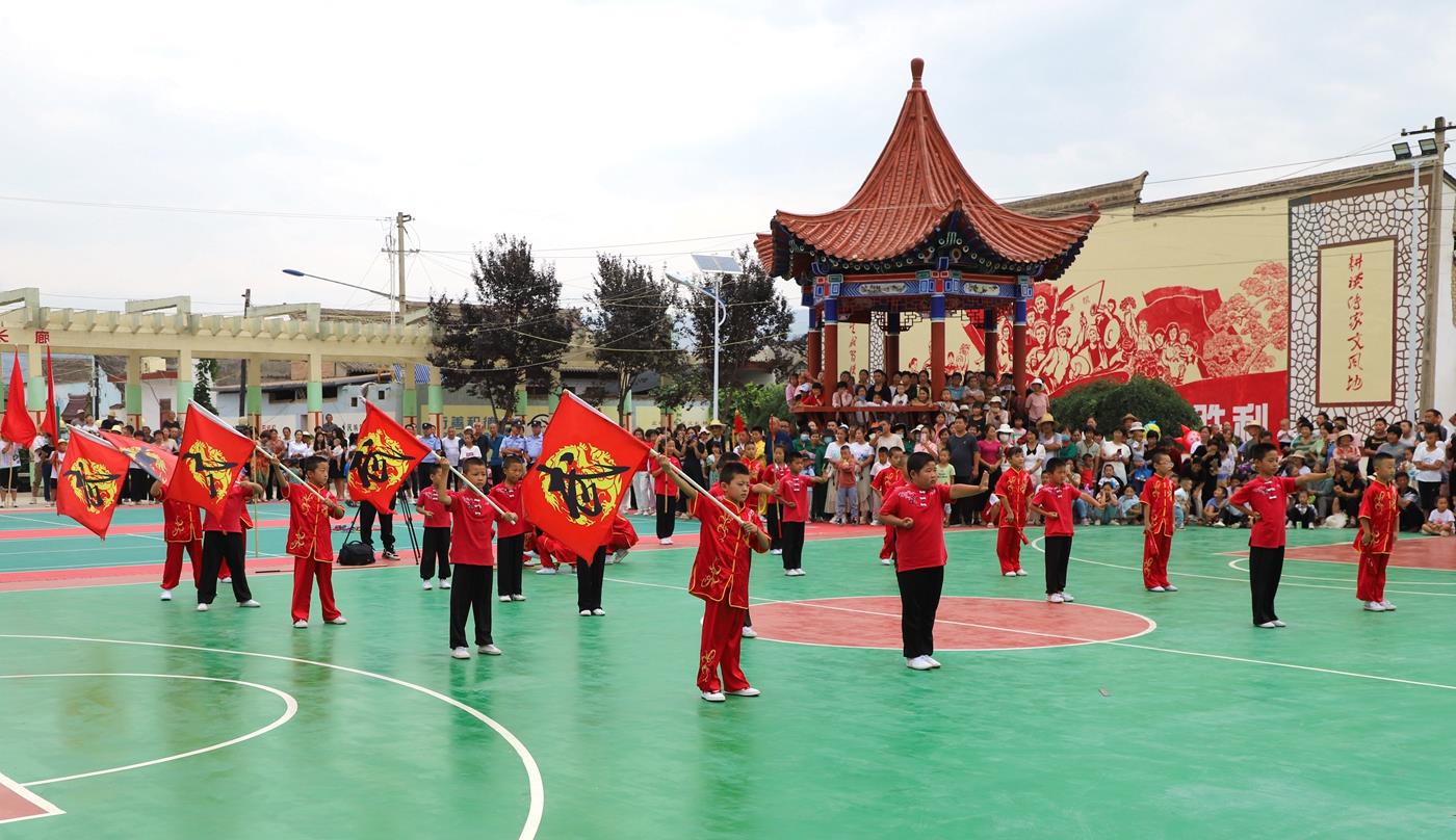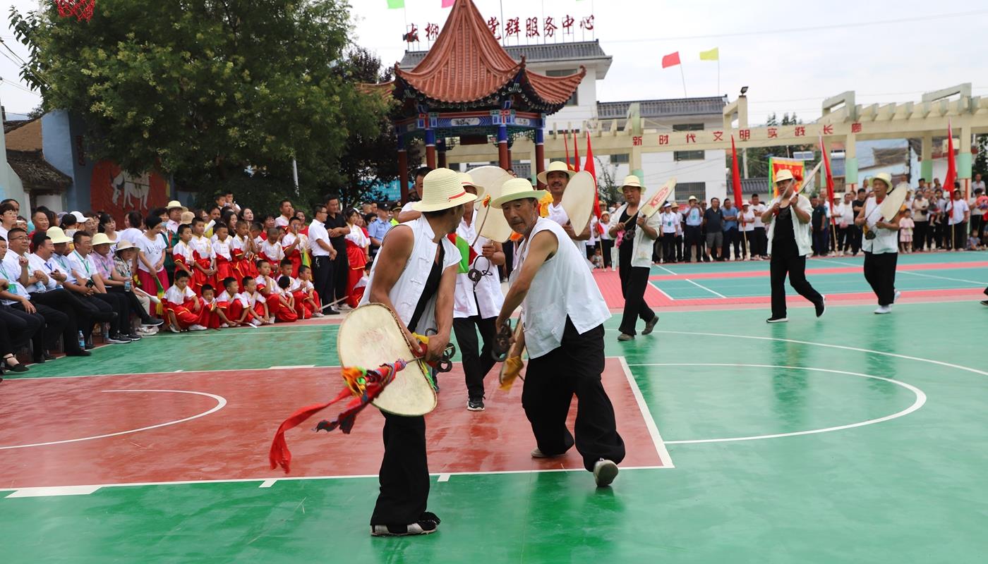 在洛门镇大柳树文化广场,文艺演出燃情开演。热情奔放的武术《武魂》拉开帷幕,武术《龙腾虎跃》《春秋大刀》《手连枷》《七星梅花枪》《枪术》《三节棍》等节目依次登台,《在希望的田野上》《七月火把节》《变脸》等歌舞、川剧表演使得整场文艺汇演精彩纷呈、亮点不断,引来观看群众阵阵掌声。