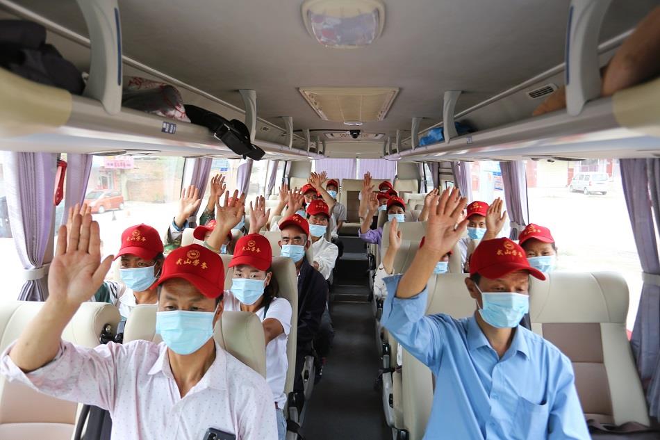 仪式上,县劳务输转服务中心工作人员为务工人员发放了口罩、安全小红帽、矿泉水、温馨提示卡等防疫和生活必需品。并就安全生产、疫情防控、权益维护等方面做了强调。要求外出务工人员要提高安全意识,自觉遵守当地疫情防控要求,做好个人防护,大家身在他乡,安全第一,只有你们的平安,才有全家人的幸福;要注重维护自身权益,到务工地后,要与用工单位签订劳动合同、参加工伤保险,确保自己的合法权益不受侵犯;要提高务工能力,务工光有力气是不够的,还得在干中学、学中干,提高劳动技能,才能挣到更多的钱;要相互支持帮助,大家远离家乡,工作、生活难免会遇到各种各样的困难,老乡之间要多联系,搞好关系,互相帮助;要多关注家乡发展变化,多介绍武山、宣传武山,提高武山知名度,为家乡增光添彩。