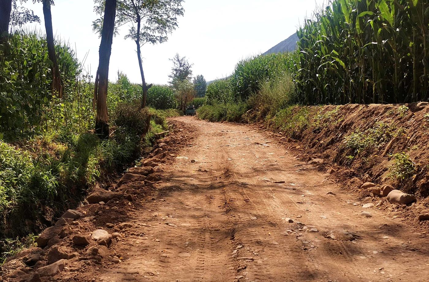 由于历史遗留问题,村里到水子滩这条路常年被水淹没,道路泥泞不堪,拖拉机、微耕机等农机工具无法开到田间地头,农忙时节只能靠村民肩挑背扛、牲口驮拉运化肥、种子等。村民迫切希望修建一条机耕路解决耕作问题,但由于村集体经济比较薄弱,迟迟无法动工修路。