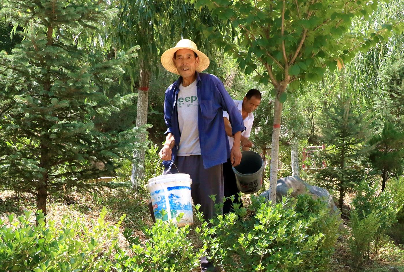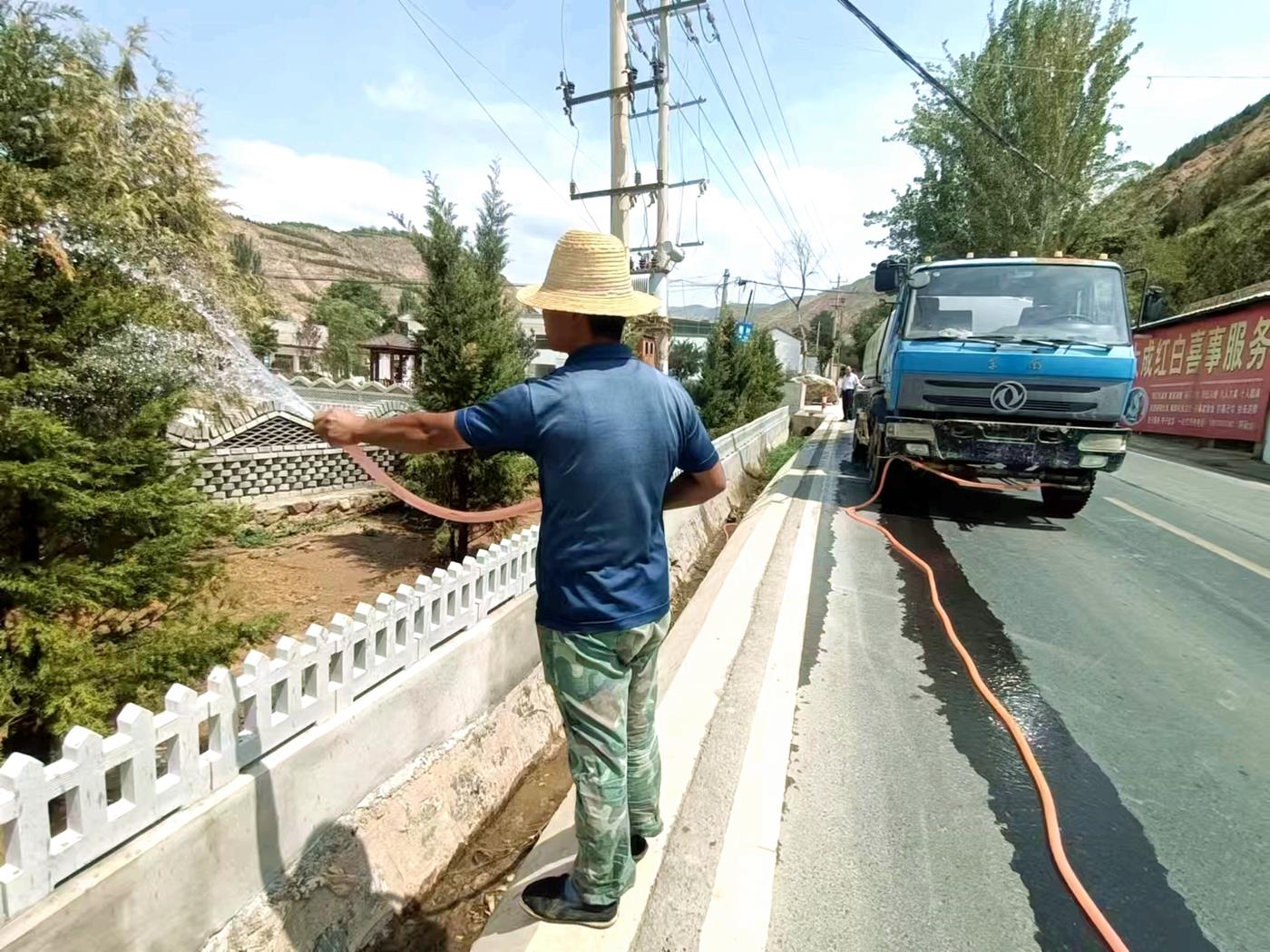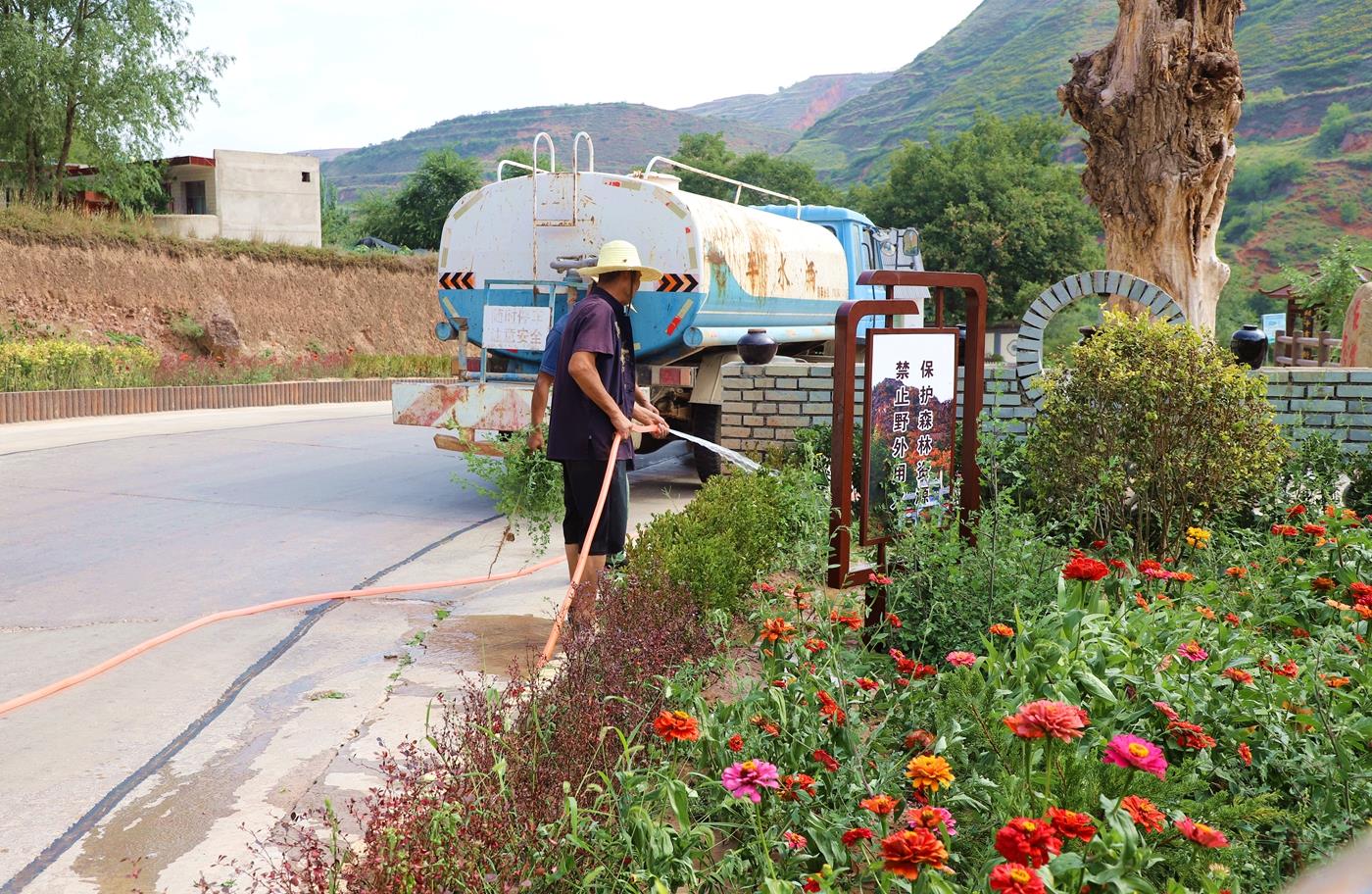 头顶烈日,手提水桶,在城关镇上沟村,党员、群众每天对1.5公里绿化带里的花草树木进行浇水,有效缓解树木旱情,确保苗木成活。“今年特别干旱,听到号召,很多人自发带上家里的水桶给花草树木浇水。村庄面貌改善来之不易,享受的过程中,也应该主动承担责任保护家园里的每一棵花草树木,大家齐心协力,共渡难关。”上沟村村民、老党员张调来说。