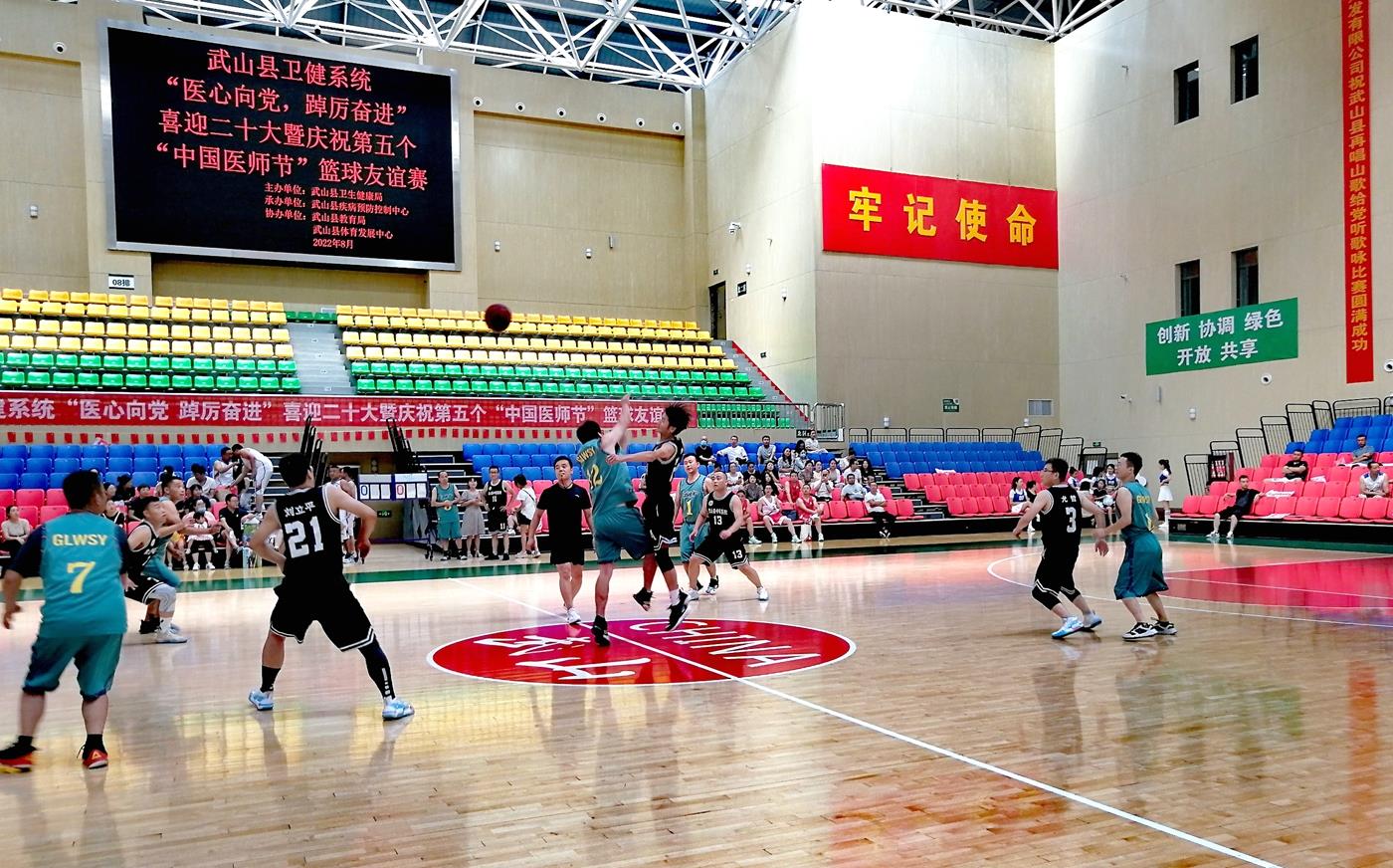 武山县融媒体中心8月12日讯(记者 彭雪)8月11日,武山县卫健系统举办喜迎二十大暨庆祝第五个“中国医师节”篮球友谊赛。