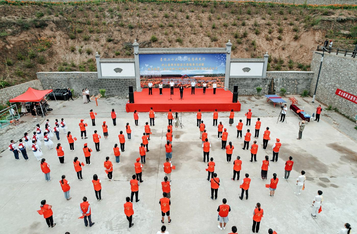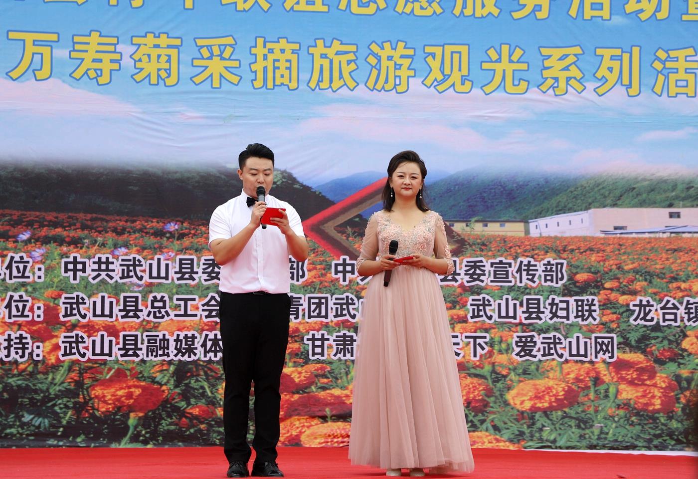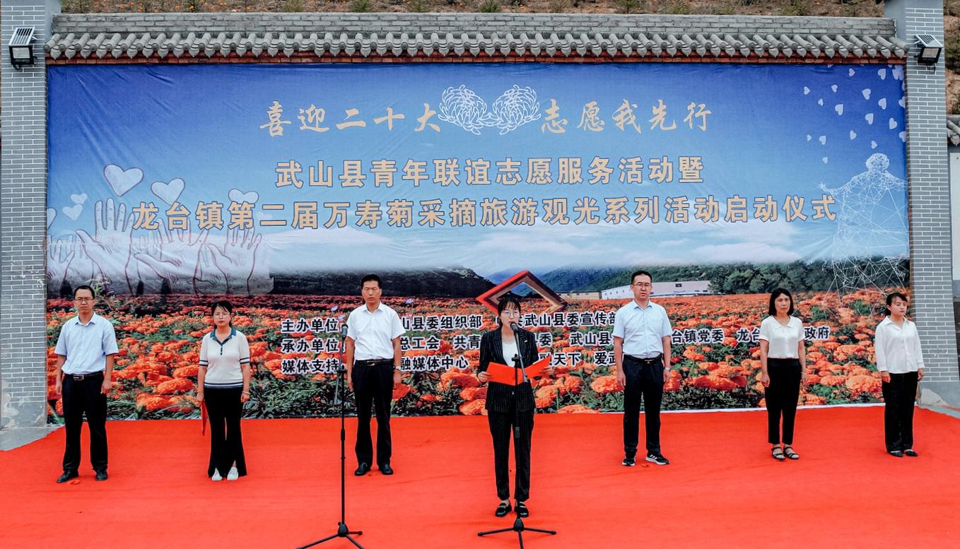 武山县融媒体中心8月5日讯(记者 颉宏斌 杨耀斌 车彤瑶 杨博 张书扬 兰红红) 8月5日,武山县举办以“喜迎二十大 志愿我先行”为主题的青年联谊志愿服务活动暨龙台镇第二届万寿菊采摘旅游观光活动。县委常委、宣传部部长胡丽霞主持活动仪式并致辞,县委常委、组织部部长宋昌华宣布活动启动,龙台镇全体机关干部参加启动仪式。