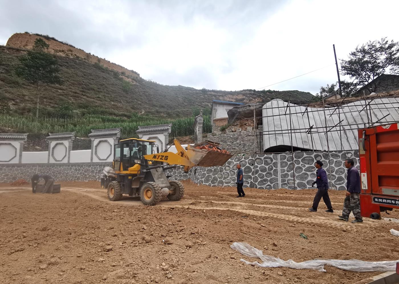 武山县融媒体中心8月4日讯(记者 唐文斌 薛妍 兰红红 杜鹃)8月2日,记者在省道208线和杨草公路交汇处的“杨河印象”文化广场项目建设现场看到,挖掘机正在平整土地,工人们有序投入到施工建设中,焊接声、切割声、锤打声与机器轰鸣声交织在一起,一派忙碌景象。