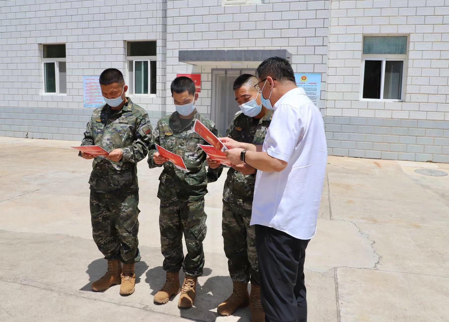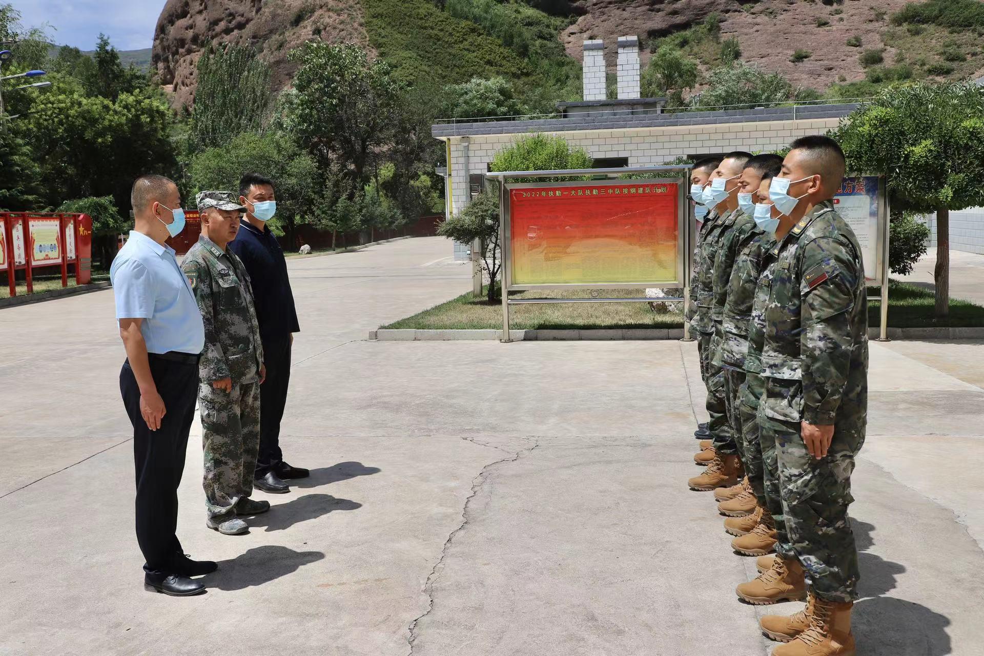 7月29日,“八一”建军节来临之际,县委常委、县人武部政委梁兴卫,县政府副县长、县公安局局长温阿军一行走访慰问驻县部队官兵,向他们致以诚挚的问候和节日祝愿。县退役军人事务局、农业银行武山县支行负责人陪同慰问。