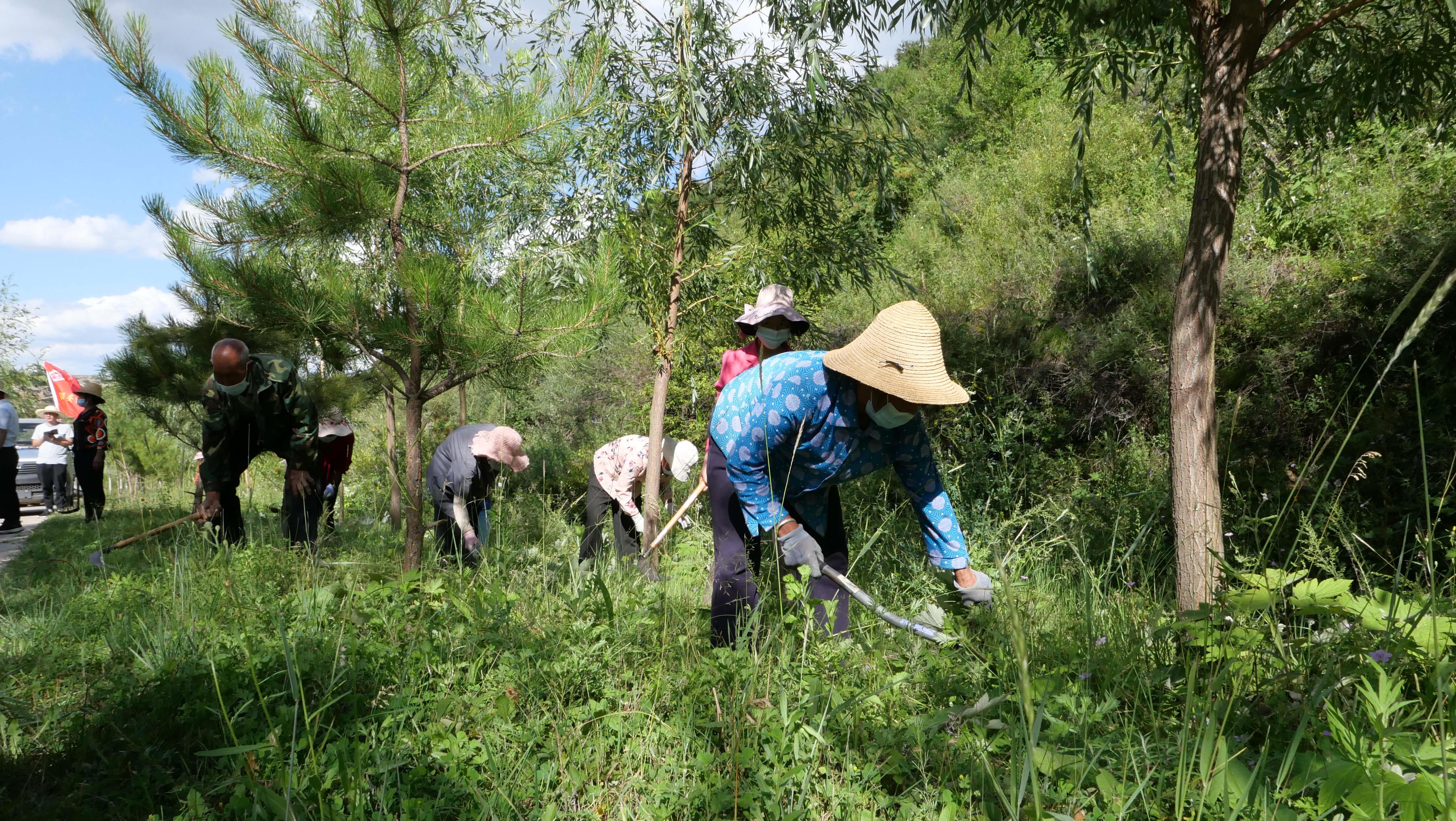 在沿安村,驻村干部和县林草局帮扶队员带领志愿者“沿路而上”,给行道树“瘦身”,给杂草“理发”。沿安村专职化书记林鼎介绍,除了清草护树,还借助这次活动,给补植的树木浇了水。