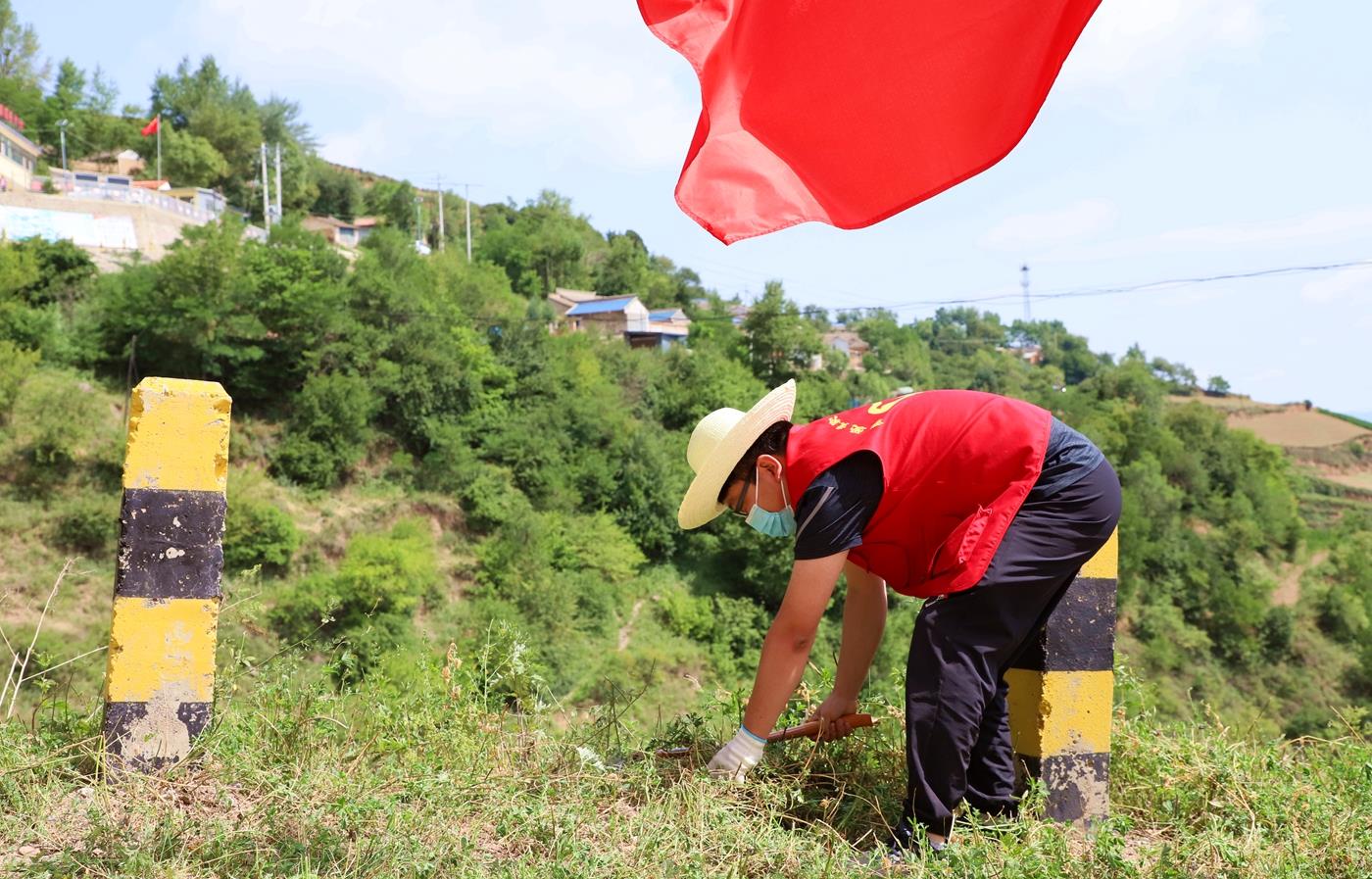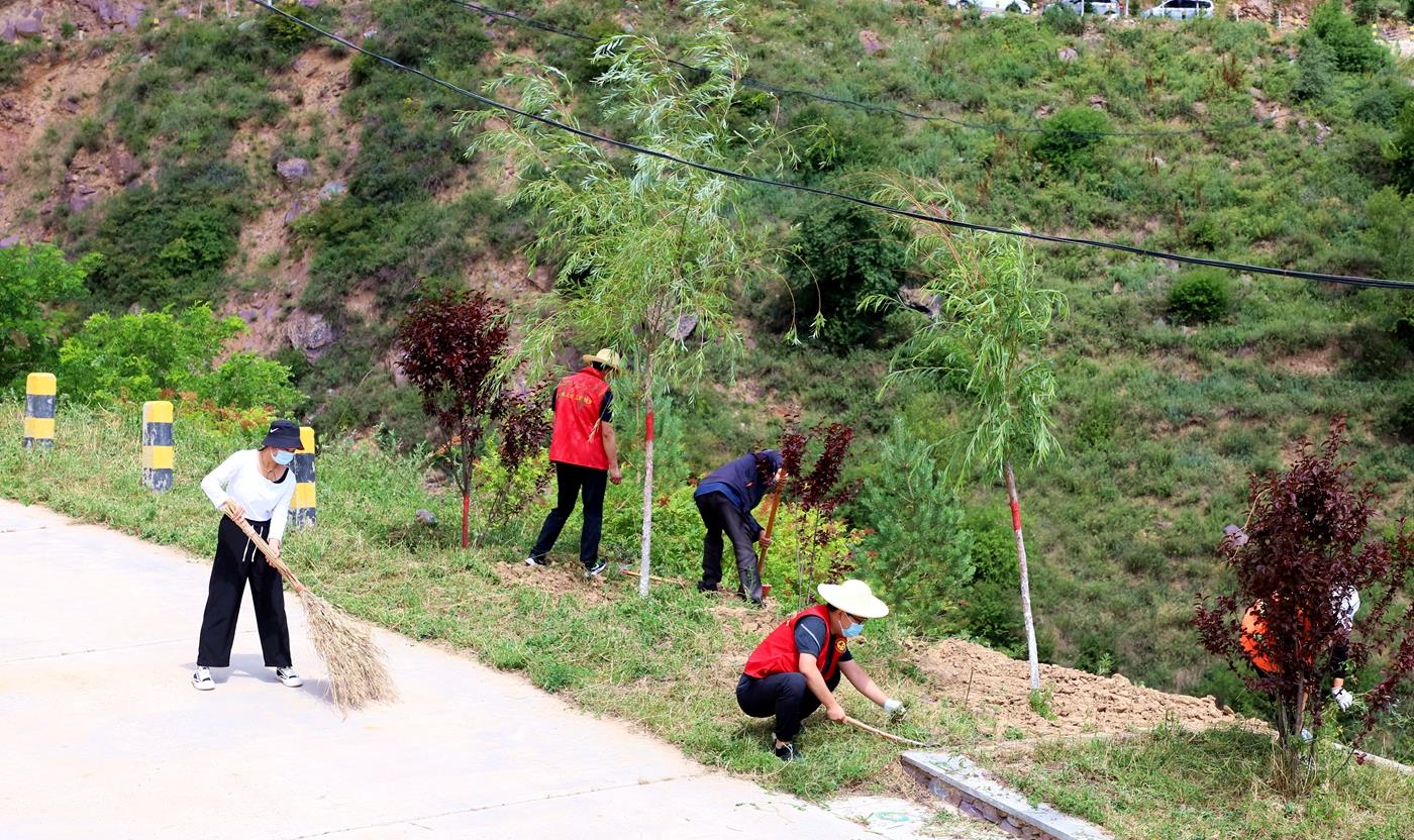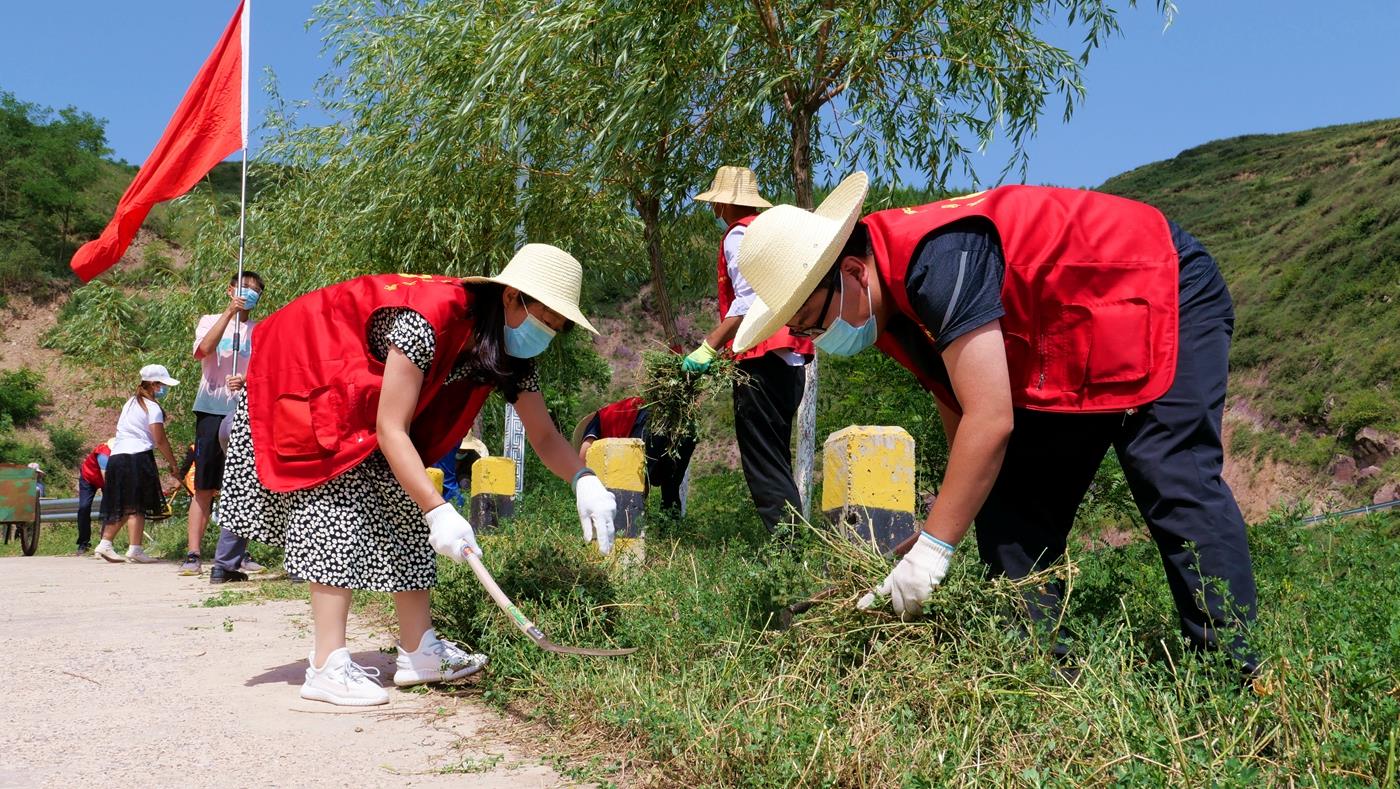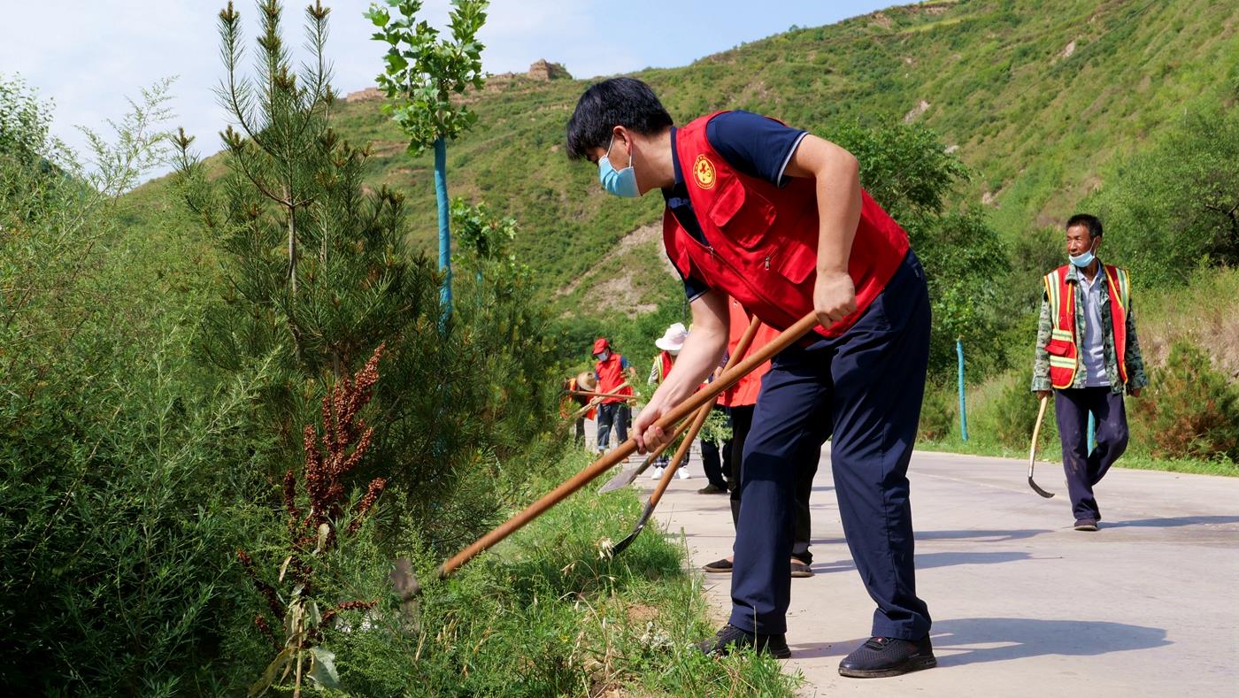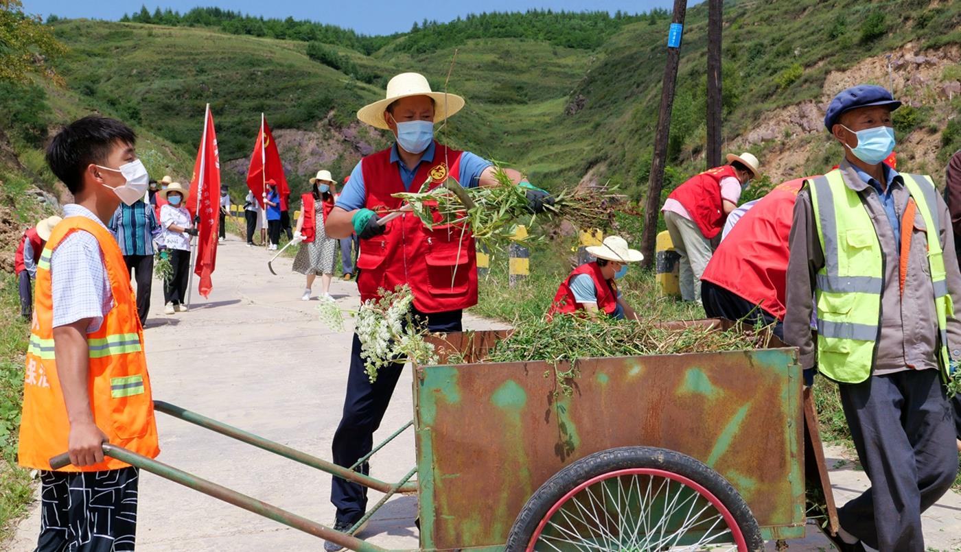 在王河村,县畜牧局干部职工身穿红马甲,与镇村干部、志愿者以及群众,清杂草、修树形、捡垃圾。“我们一早就来到了村上,大家商议后按早上一条线、下午一条线开展清理。我觉得很有意义,清理后道路上的杂草少了,环境好了。对我们干部来说也是一次深入基层的为民办实事活动。”县畜牧局干部孙莉说。