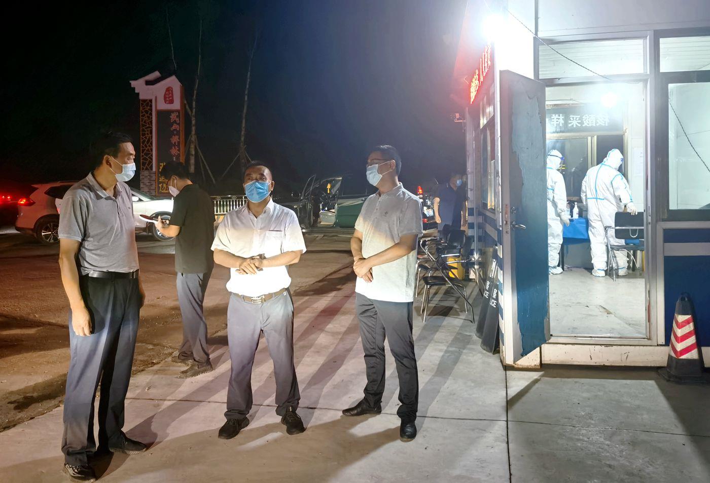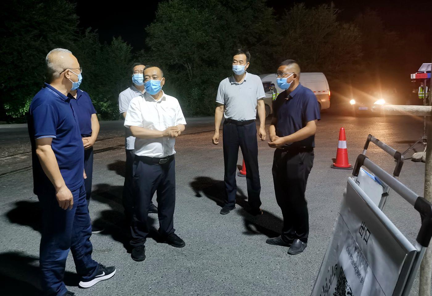 7月14日晚,县委书记王新强连夜深入天定高速鸳鸯出口、桦林镇牛庄卡口,检查指导疫情防控工作。
