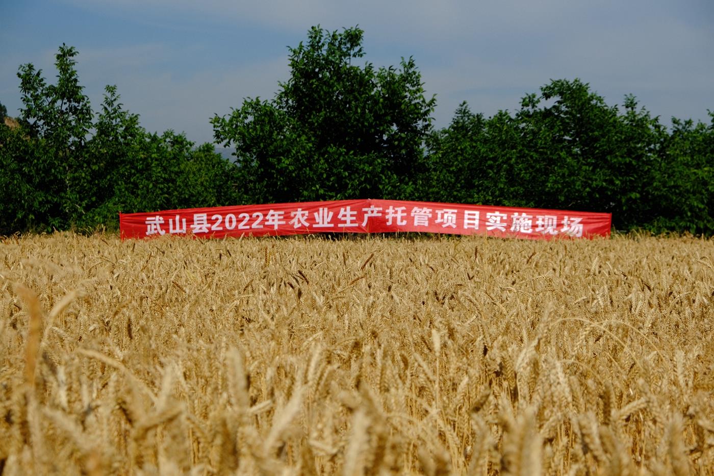 武山县融媒体中心7月8日讯(记者 彭雪 张书扬)“麦到小满日夜黄,芒种前后机收忙”。今年5月份以来,为加快构建现代化农业发展体系,武山县大力推进农业生产托管项目,全县预计完成集中连片推进农业生产托管服务任务面积3万亩,引导农户广泛接受低成本、便利化、全方位的农业社会化服务,促进农户与现代农业发展有机衔接。