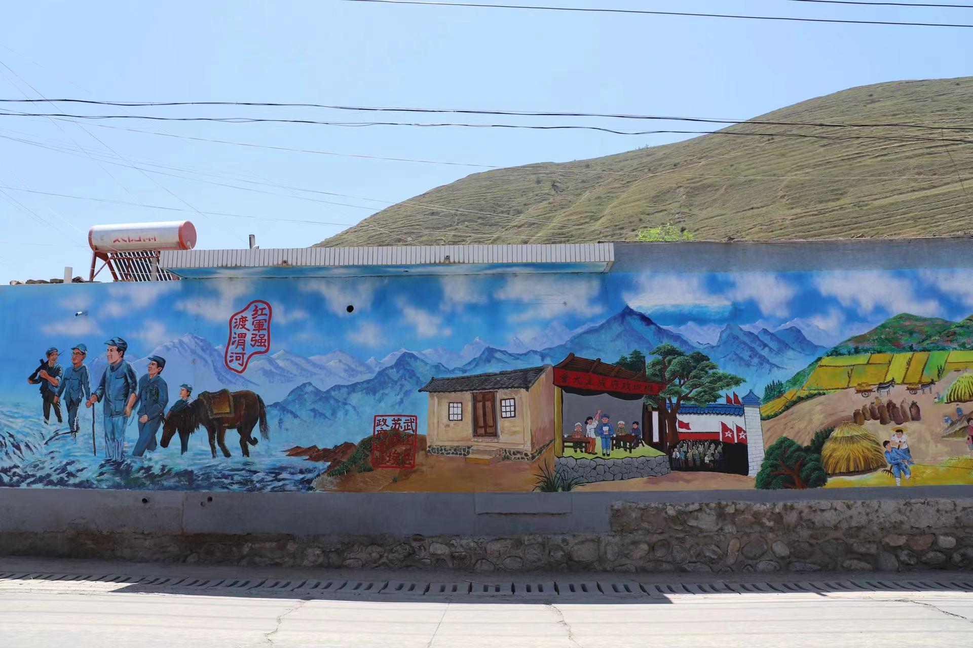 沿着武漳公路,行走两公里,便到了颉门村。一进村庄,一面面红色文化主题墙绘将人们带入到那片战火纷飞的年代。武山有着悠久的革命历史和厚重的红色文化底蕴,红军三大主力部队曾先后三次经过武山,在武山大地上留下了北上抗日、救国救民的红色印记和自强不息的长征精神。1935年9月25日,毛泽东率领红一方面军(陕甘支队)从鸳鸯强渡渭河,在费家山住宿一夜。1935年9月至1936年10月,红一、红四方面军武山活动期间,在鸳鸯镇颉门村建立了武山县苏维埃政府。今天的颉门村,正在深挖村庄红色记忆,以建设美丽乡村为目标,努力建设成红色文化名村。