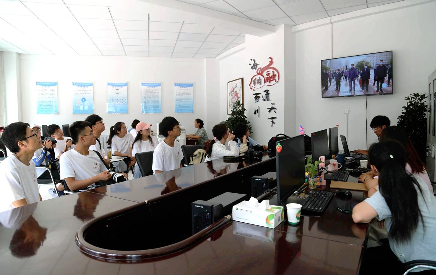 参加社会实践合作的师生现场参观了解了县融媒体中心成长历程、部室建设、媒体运营、新媒体平台和发展前景。新闻工作人员和师生一同就播音主持、视频制作、采编发布等新闻专业知识技能进行深入探讨交流和现场实践。学生们纷纷表示,通过生动的现场实践教学,极大地提升了在校学生的专技应用能力,增强了社会责任感。