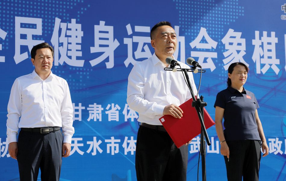 (县委书记王新强宣布“甘肃省第四届全民健身运动会象棋比赛”开赛)