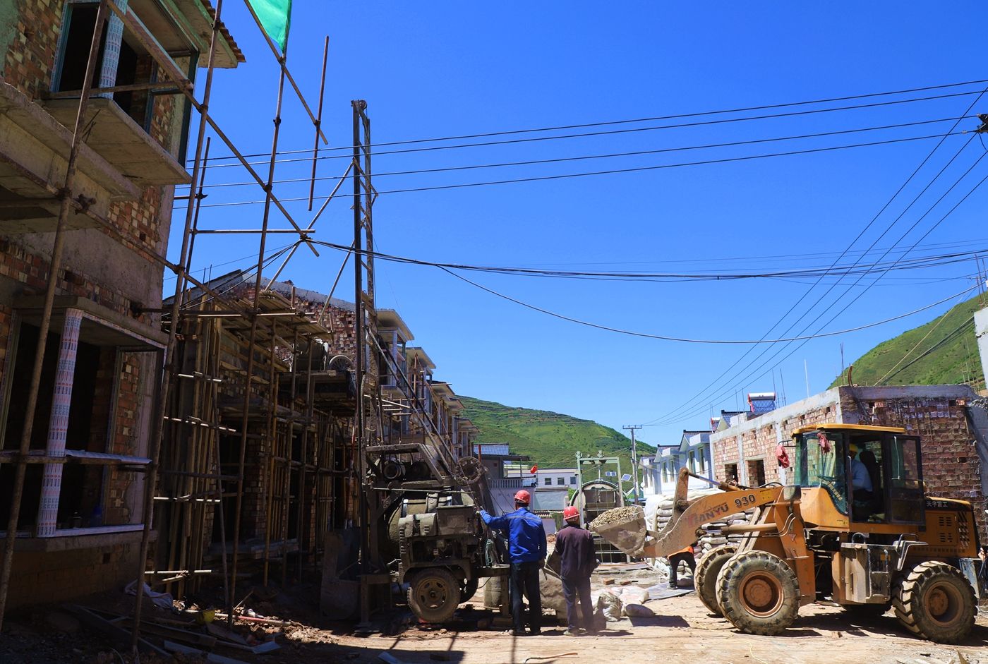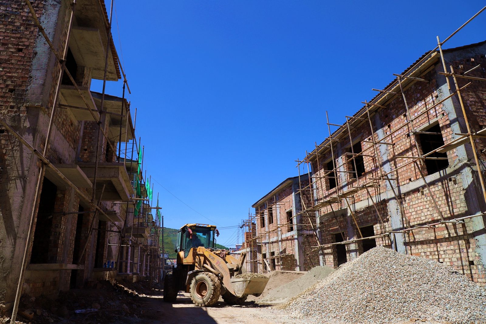 7月4日,记者在武山县杨河镇生态及地质灾害避险搬迁集中安置点项目二标段建设现场看到,所有二层小楼主体已完工,工人冒着酷热加紧安装门窗,铲车来回运送材料,一派繁忙的施工场景。