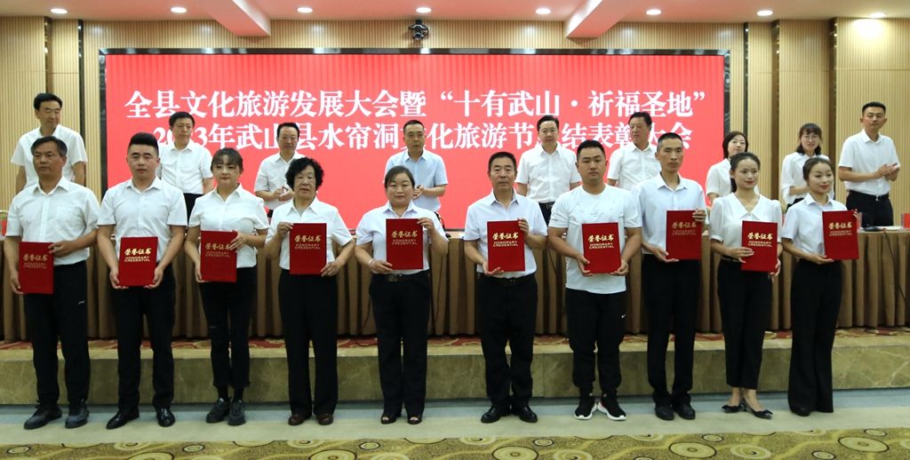 会上,县委副书记马福胜宣读了“十有武山·祈福圣地”2023年武山县水帘洞文化旅游节组委会《关于表彰筹办工作先进集体和先进个人的决定》;县委常委、宣传部部长胡丽霞通报了“十有武山·祈福圣地”2023年武山县水帘洞文化旅游节举办情况及取得的成效,安排了“武山十景”“武山十品”“武山十味”“武山十鲜”“武山十艺”宣传推介工作;副县长王岩传达学习了全省文化旅游发展大会精神,通报了全县文化旅游发展情况。会议对文化旅游节筹办工作先进集体、先进个人进行了表彰,县委宣传部、县文旅局、洛门镇、马力镇、龙台镇和先进个人代表分别作了发言。