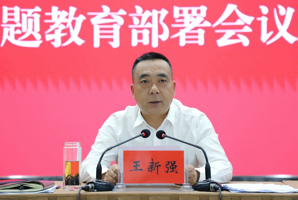 王新强在讲话中指出,在全党深入开展学习贯彻习近平新时代中国特色社会主义思想主题教育,是党中央为全面贯彻落实党的二十大精神、深入推进新时代党的建设新的伟大工程所作的重大决策部署,对于进一步统一党员干部思想行动、始终保持党同人民群众血肉联系、推动经济社会高质量发展,具有十分重要的意义。全县各级党组织和广大党员干部要提高政治站位,深刻认识开展学习贯彻习近平新时代中国特色社会主义思想主题教育的重大意义,自觉把思想和行动统一到党中央决策部署和省、市委工作要求上来,以高度政治自觉扎实开展主题教育。