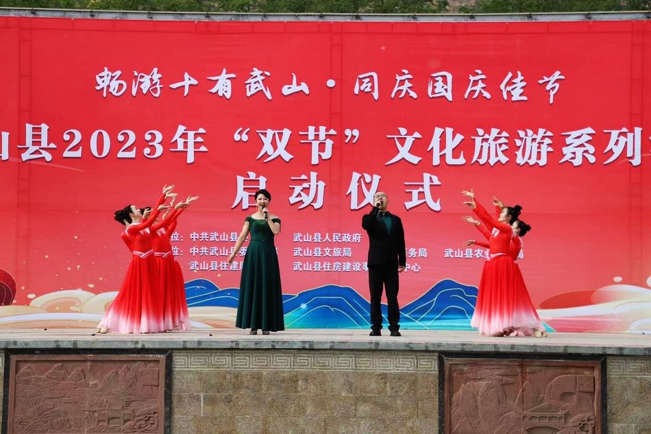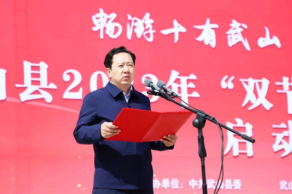 王新强指出,近年来,武山县把文化旅游作为“强县域”的重要抓手,坚持以文化人凝聚共识、正确用人激发干劲、一二三产融合发展、全域旅游打造名片、城乡振兴均衡发展、创新方式扩大影响、打防并举优化环境,推动经济发展稳中向好,城乡面貌焕然一新,人民福祉日益增进,干事环境风清气正,全县各项事业取得新成效。王新强强调,举办“双节”文化旅游系列活动,是县委、县政府深入贯彻落实党的二十大精神、弘扬中华优秀传统文化、全方位宣传推介“十有”县情特色文化旅游资源、促进文旅农康深度融合的重要举措。各级各相关部门要加强组织领导,深挖消费潜能、激活消费市场,更好满足群众的文化和消费需求,统筹做好活动期间的安保、消防、交通秩序整治等工作。各乡镇要以此次启动仪式为契机,结合各自实际,认真组织开展丰富多彩的群众文化活动,努力营造喜庆欢乐、祥和文明、安全和谐的节日氛围。诚邀各界朋友来武山旅游观光、投资兴业,感受多姿多彩的历史文化、领略“十有”资源的独特魅力、观赏浑然天成的自然风光、体验别具特色的民俗风情、品尝渭川地道的美食小吃,共享发展机遇、共创品质旅程、共赢美好未来。