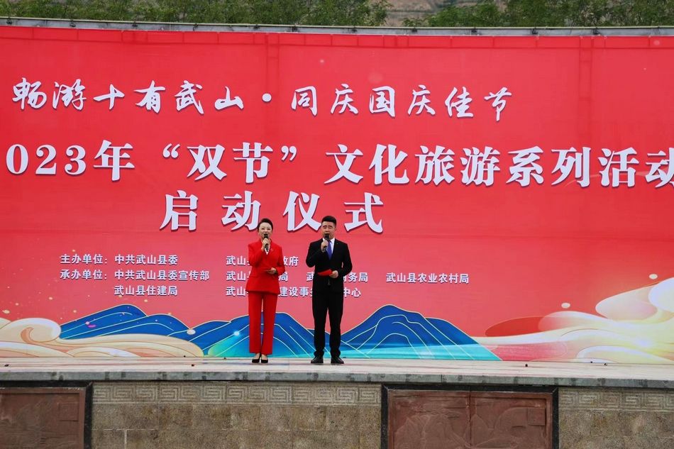 县融媒体中心讯(记者 车彤瑶 管秋勇 实习生孟悦)9月28日,“畅游十有武山•同庆国庆佳节”武山县2023年“双节”文化旅游系列活动启动。县委书记王新强讲话并宣布活动启动,县委副书记、县长王志成主持仪式,县委副书记赵百祥对“畅游十有武山•同庆国庆佳节”武山县2023年“双节”文化旅游系列活动作了说明,县文旅局等部门介绍系列活动情况。县人大常委会主任孙德银,县政协主席庞明全及县四大班子其他在家领导,法检两长出席活动,各乡镇、县直各部门、驻县各单位负责人,武山商会、县内房地产、工业、农业、商贸及文旅企业代表及干部群众代表参加启动仪式。