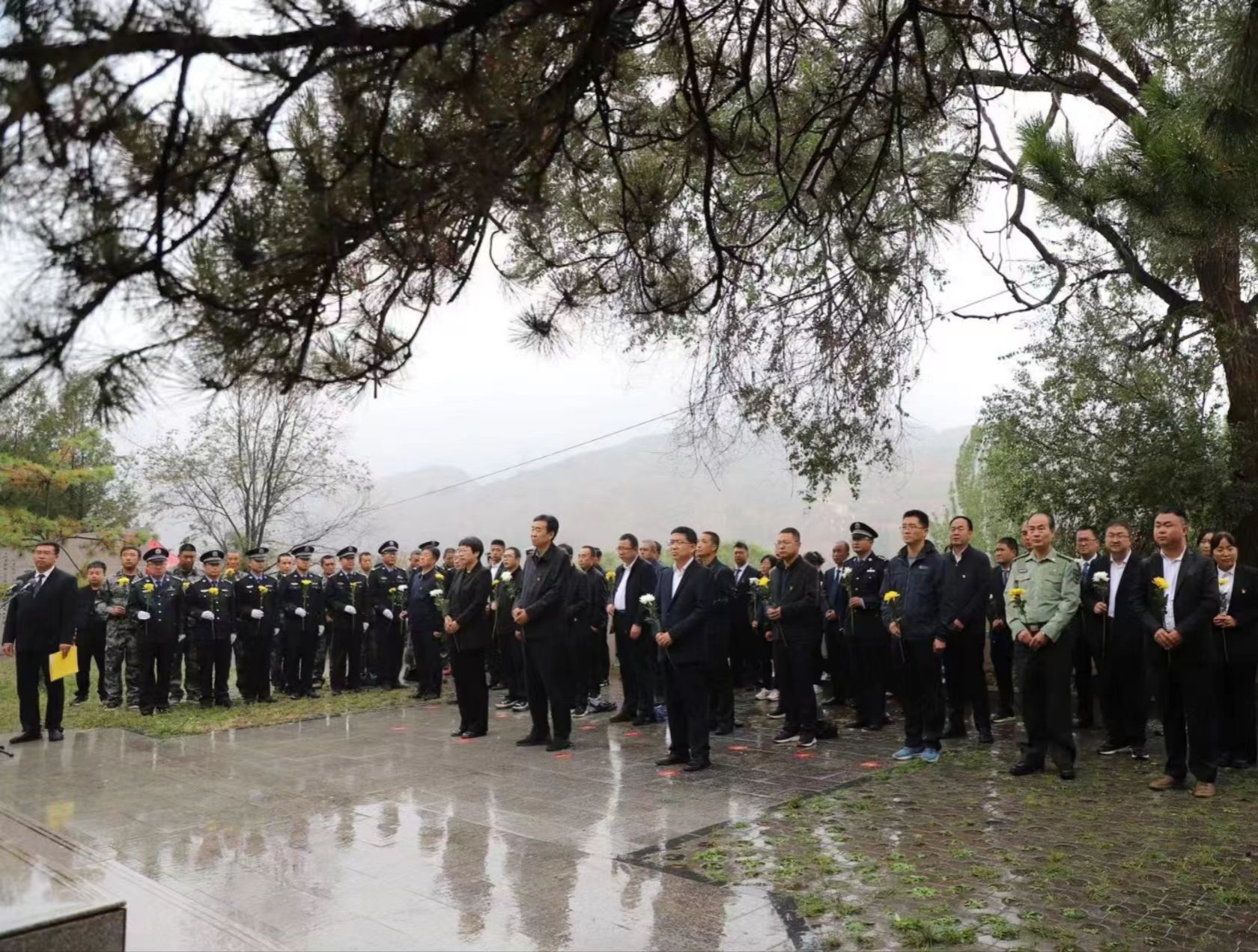 烈士忠魂千秋在,英雄浩气万古存。苍松翠柏掩映下的烈士纪念碑格外庄严肃穆。上午9时,纪念活动在雄壮的中华人民共和国国歌声中拉开序幕,少先队员献唱《我们是共产主义接班人》,全体肃立默哀,深切缅怀为国家富强和人民幸福而英勇牺牲的革命烈士。