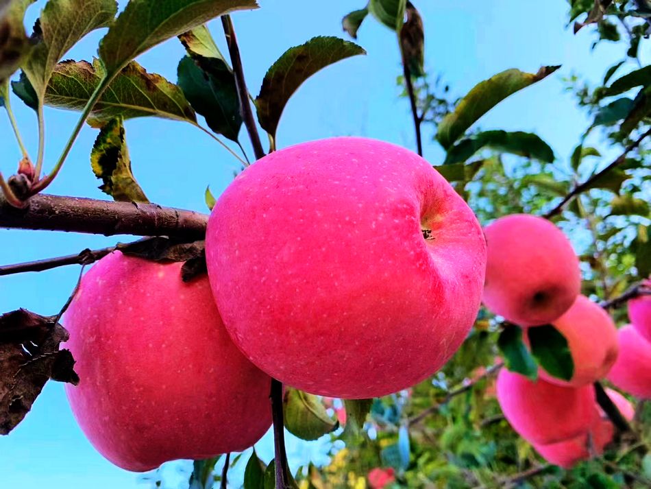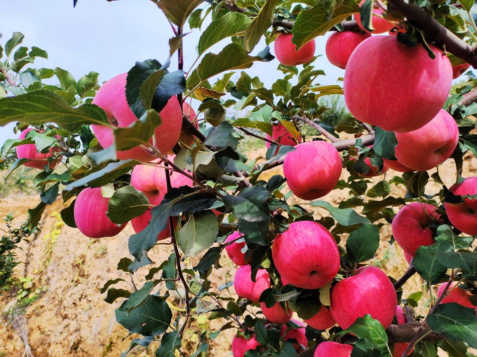 金秋时节,硕果盈枝。漫步在金银村的山山峁峁,连片的果园里,苹果树枝繁叶茂,硕果累累,红彤彤的苹果宛若一串串红灯笼挂满枝头,空气中弥漫着浓郁的果香。果农们脸上洋溢出丰收的喜悦。嘴头乡高山富士苹果陆续成熟了。