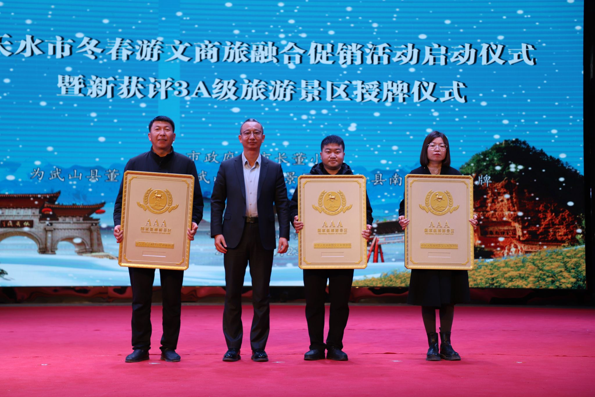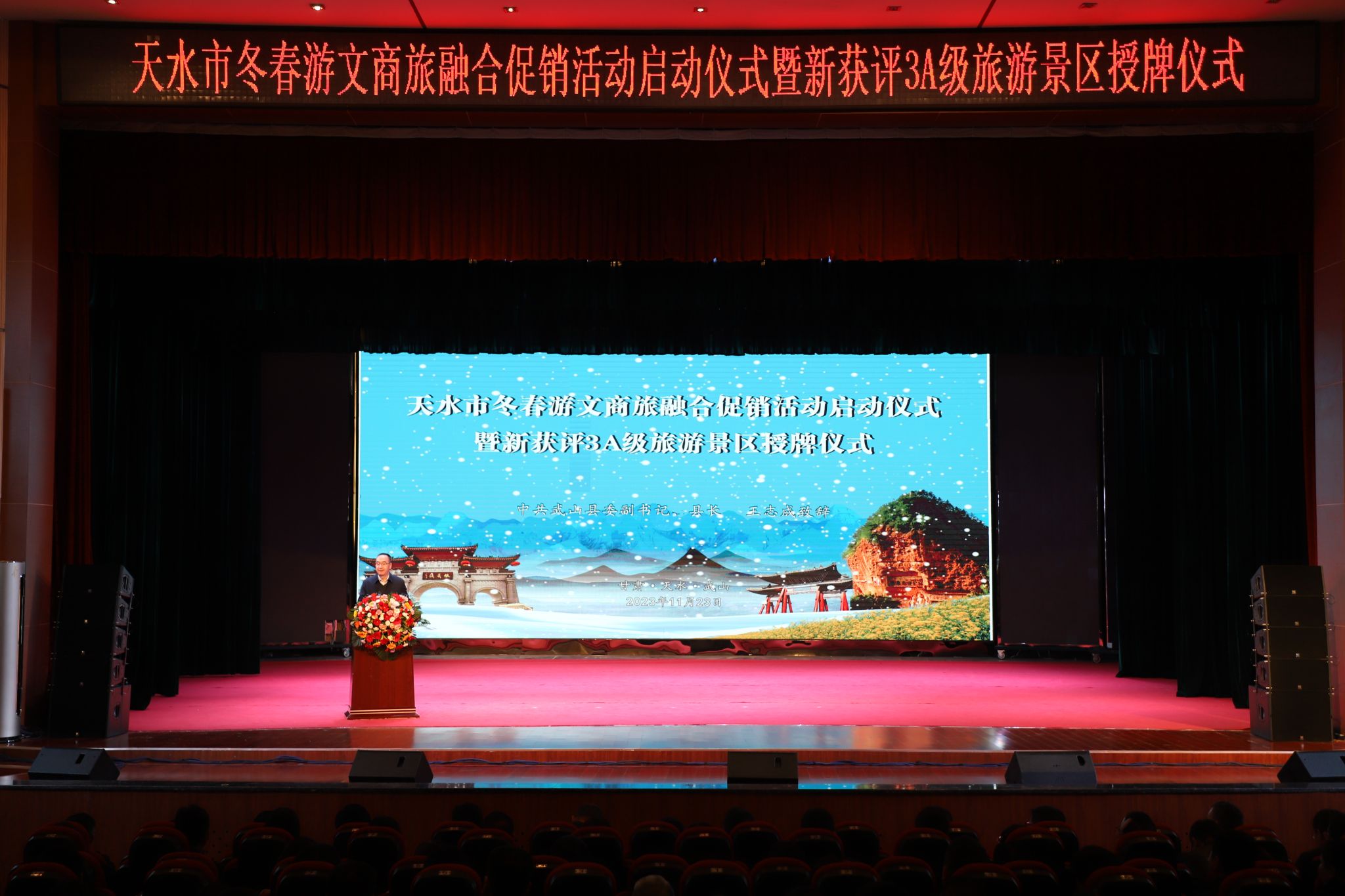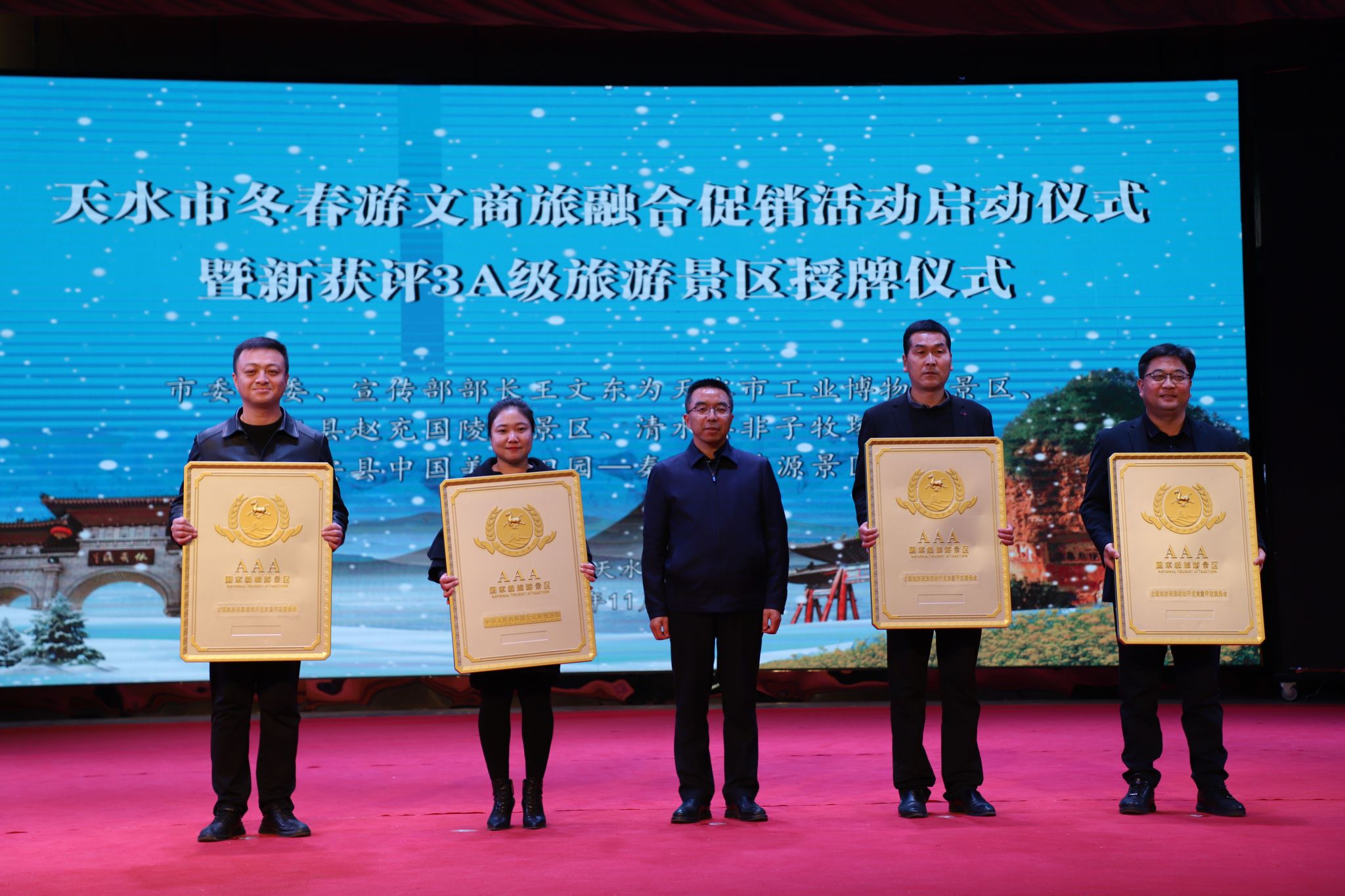 11月23日,“千山万水 就爱天水——畅游羲皇故里 惠购冬春特产”天水市冬春游文商旅融合促销活动启动仪式暨新获评3A级旅游景区授牌仪式在武山县举办。