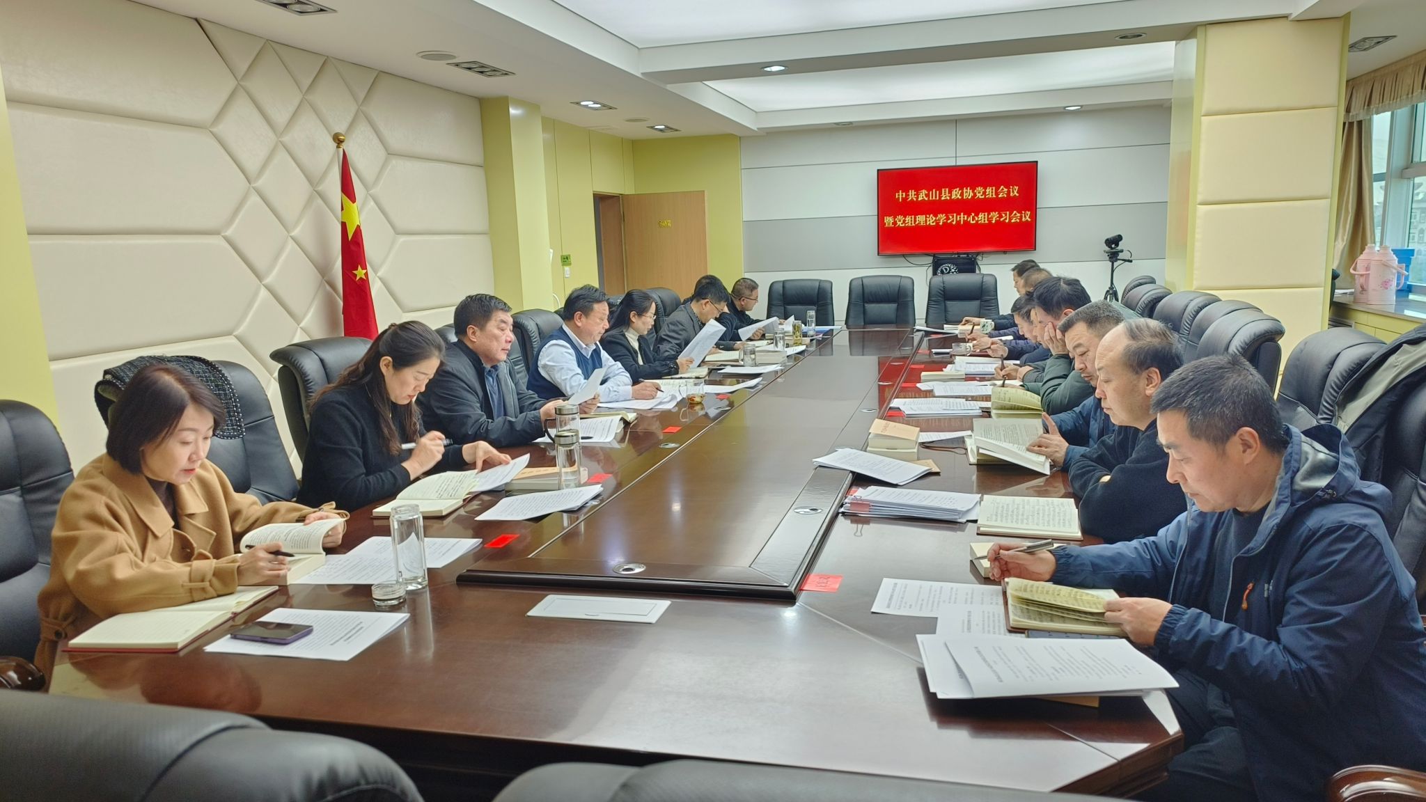 11月30日,武山县政协召开党组会议暨党组理论学习中心组学习会议。县政协党组书记、主席庞明全主持会议,党组成员、副主席许鹏云、孟立瑞、邓红兵,副主席党荣华、吴建明、张莉,党组成员、秘书长魏小银出席会议,各专委办主任、副主任列席会议。