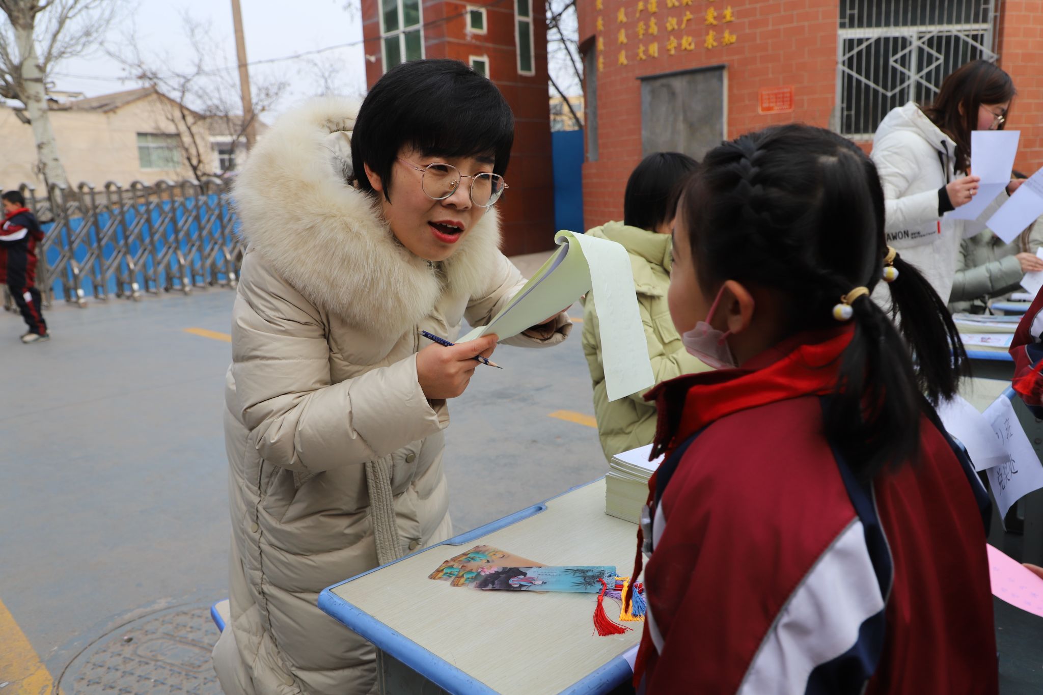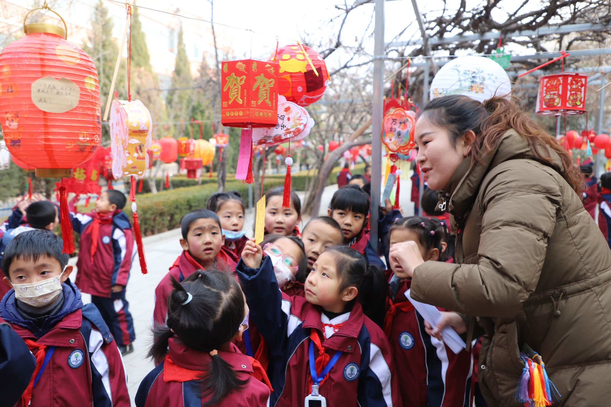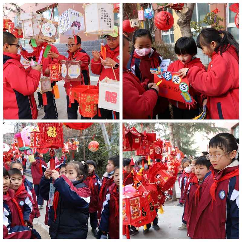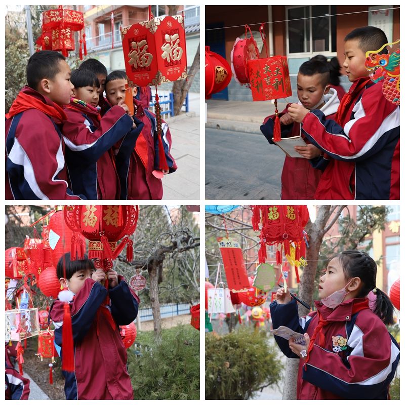 活动现场五彩斑斓、热闹非凡。喜庆的红灯笼高高悬挂,红线绳挂满灯谜卡片,各式各样彩色灯谜纸条的灯谜架排成一排,与孩子们纯真的笑脸相映成趣。老师和同学们穿梭在谜条和展板间,流连忘返,或沉浸在猜谜的乐趣中,或对灯谜凝思苦想,或一起讨论灯谜答案,或胸有成竹地核对答案,或笑意盎然地兑换奖品,构成了一道独特的风景画。谜面前,大家一边欣赏着琳琅满目的谜条,一边仔细阅读谜语,认真思考、小声探讨,不时传来一阵阵欢快的笑声,大家在喜悦和思考中体会猜谜的乐趣,感受着浓浓的文化气息。