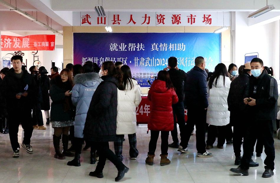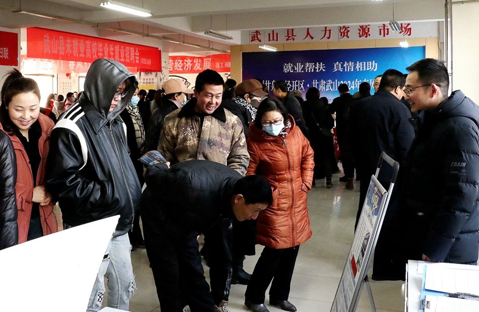 本次招聘会上,新疆中部合盛硅业有限公司、国能新疆化工有限公司等8家甘泉堡经济技术开发区企业面向我县高校毕业生、退役军人、农民工提供生产管理、内勤文职、辅助普工等就业岗位6000多个,月均工资6500元以上。招聘现场人头攒动,来自全县15个乡镇的500多名求职者积极参加应聘咨询,现场达成就业意向100多人。据悉,1月27日至28日,新疆甘泉堡经开区和武山人社局还将组织招聘单位下沉到鸳鸯、马力、滩歌、杨河等乡镇开展招聘活动。