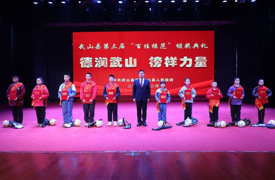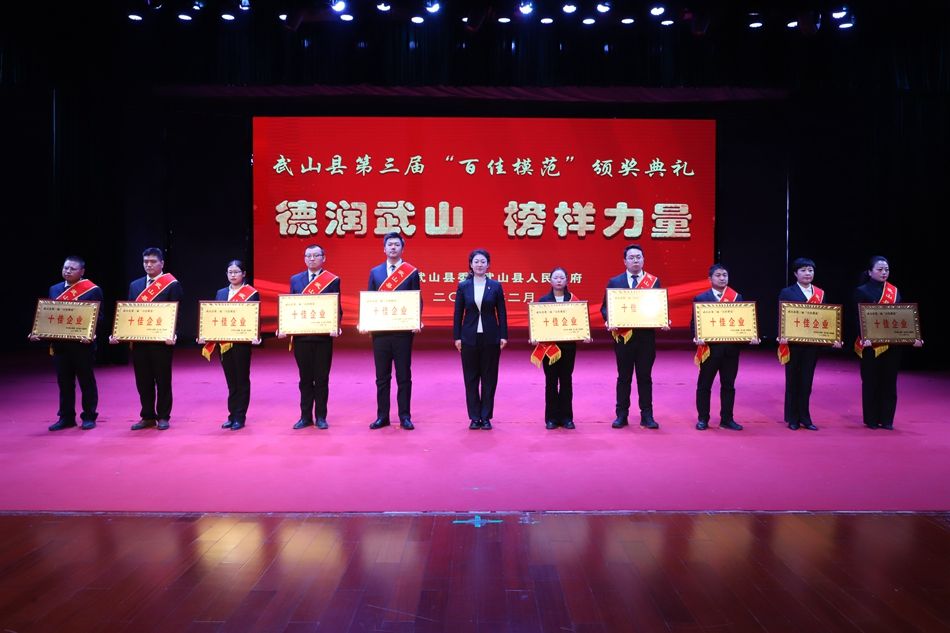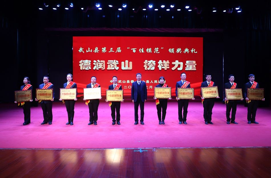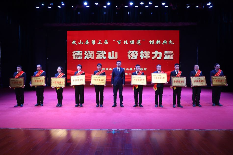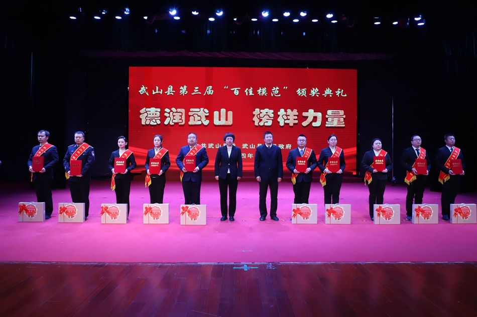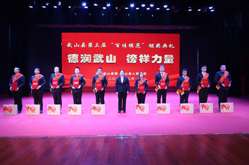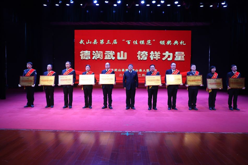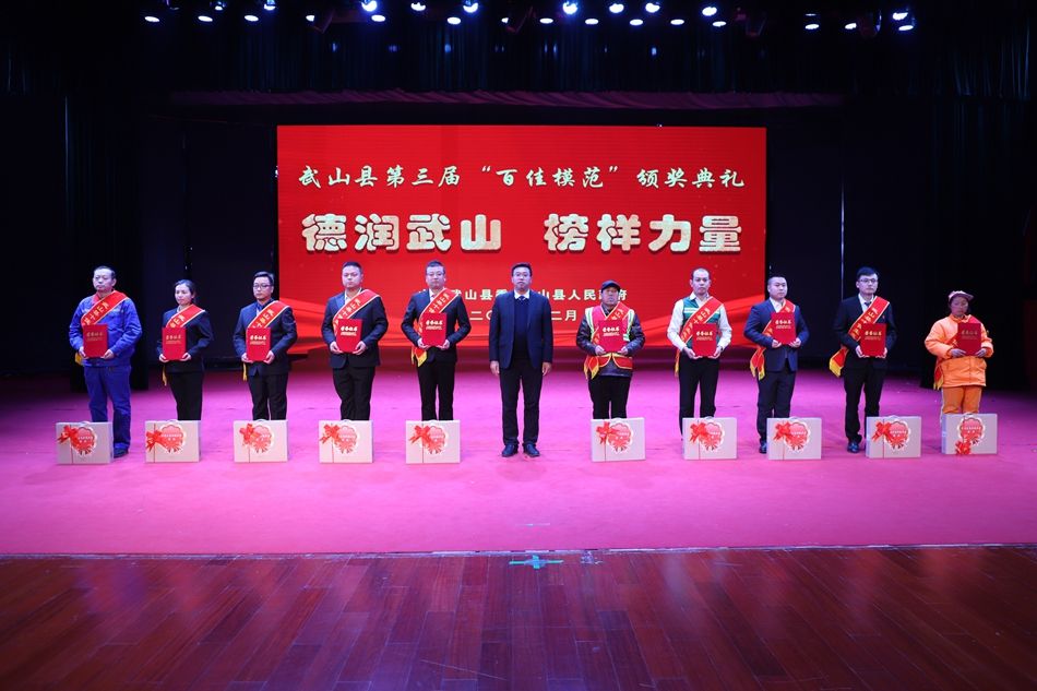 县委副书记赵百祥宣读了《中共武山县委 武山县人民政府关于表彰武山县第三届“百佳模范”的决定》,典礼表彰了“十佳和美乡村”“十佳村级集体经济示范村”“十佳农民专业合作社示范社”“十佳诚信经营主体”“十佳企业”“十佳全域旅游创建先进集体”“十佳主动创稳先进集体”“十佳双拥模范单位”“十佳文明家庭”“十佳社团组织”等十类先进集体和“十佳武山好人”“十佳劳动模范”“十佳新时代好少年”“十佳科技工作者”“十佳生态环保卫士”“十佳渭川文化传承保护人”“十佳综治标兵”“十佳结对关爱行动先进个人”“十佳驻村帮扶队员”“十佳优秀干部”等十类先进个人。