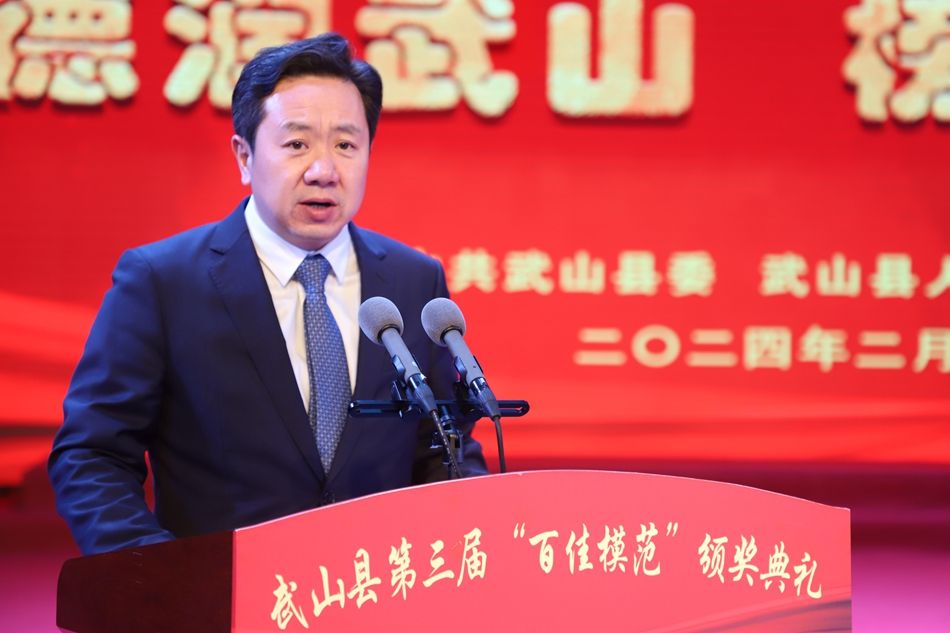 颁奖典礼上,县委副书记、县长王志成作了致辞,代表县四大班子向奋战在全县各行各业的广大干部群众致以崇高的敬意和衷心的感谢,向受到表彰的先进集体和先进个人表示热烈的祝贺,并希望受到表彰的“百佳模范”倍加珍惜荣誉,立足岗位实际,发挥表率作用,以开拓创新、奋发有为的精神状态,在谱写中国式现代化武山实践中展现新作为、创造新业绩!