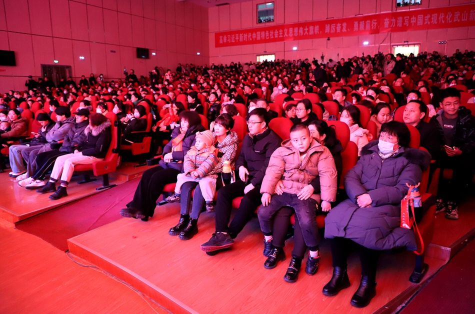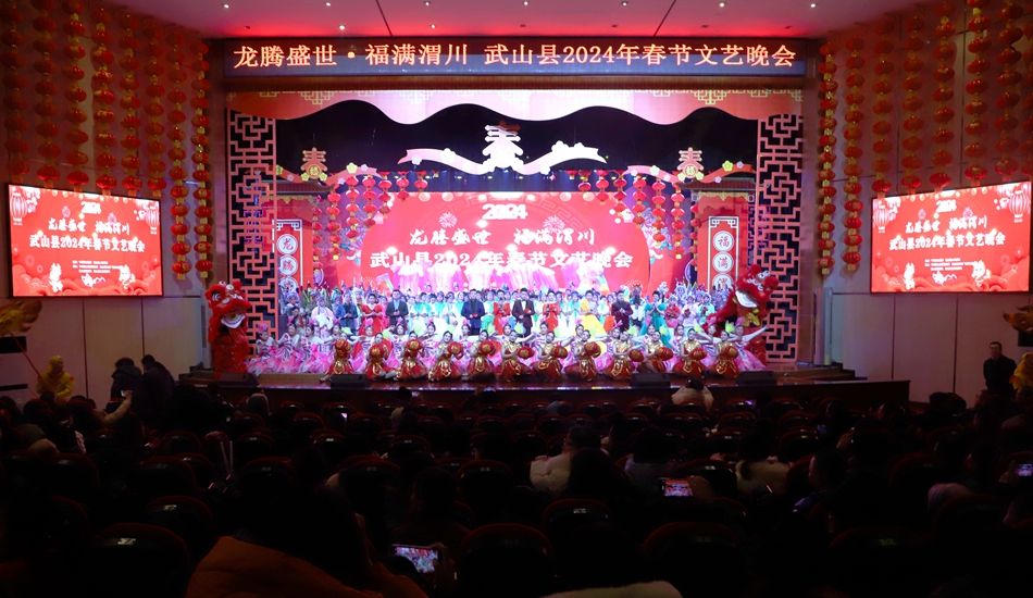 演出前,县委书记王新强致新春贺词,代表县四大班子向全县人民致以节日的问候和新春的祝福。他指出,刚刚过去的2023年,全县人民坚定信心、迎难而上、辛勤耕耘,干成了不少实事难事,办成了许多大事好事。发展迈上“新台阶”,文旅融合实现“新突破”,城乡面貌展现“新颜值”,改革开放激发“新活力”,民生福祉交出“新答卷”,干部作风实现“新转变”。他强调,武山发展离不开全县人民的辛勤付出和倾力奉献,离不开全县党员干部的担当作为和埋头苦干,离不开社会各界的关心厚爱和鼎力支持。新的一年,全县上下要沿着习近平总书记指引的道路坚定前行,认真贯彻落实党中央关于推动高质量发展的重要部署和省委十四届四次全会、市委八届七次全会、县委十五届九次全会工作要求,深入推进“一线六圈”城乡振兴计划,大力实施“十大行动”赋能乡村全面振兴,持续在产业发展、文旅融合、民生改善、改革开放、生态环保、主动创稳、管党治党上取得新进步,奋力谱写全面建设社会主义现代化幸福美好新武山崭新篇章。