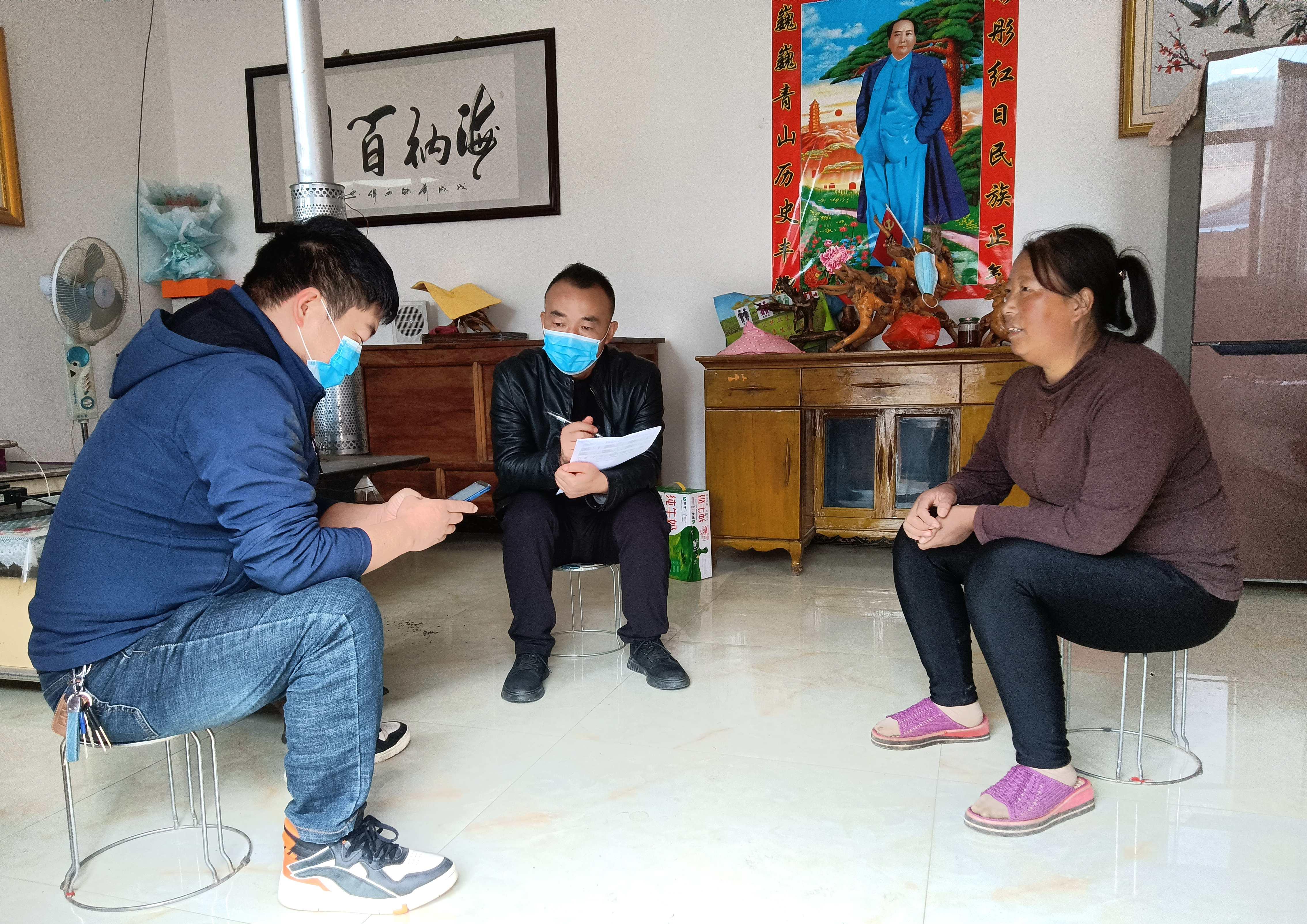 在龙台镇马年村党群服务中心二楼党员活动室,马年村正在召开党的二十大精神专题学习会。天水市司法局派驻马年村第一书记杜海峰和村里的党员群众一起,共同学习领会党的二十大精神。