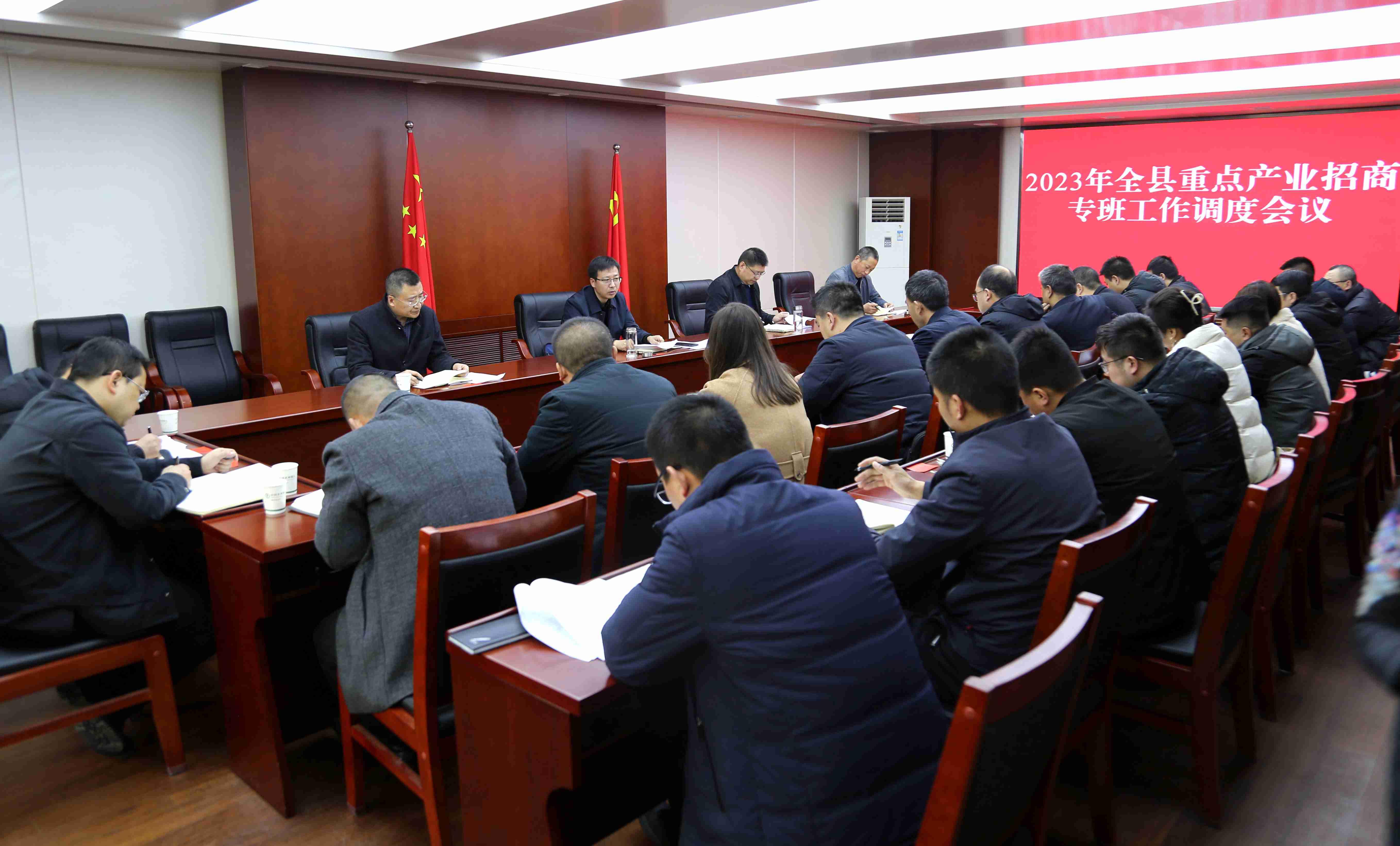 县委常委、统战部部长李森主持会议,县委常委、副县长赵百祥安排部署2023年重点产业招商专班工作,县人大常委会副主任韩永红、县政协副主席吴健明及4个重点产业招商专班人员参加会议。