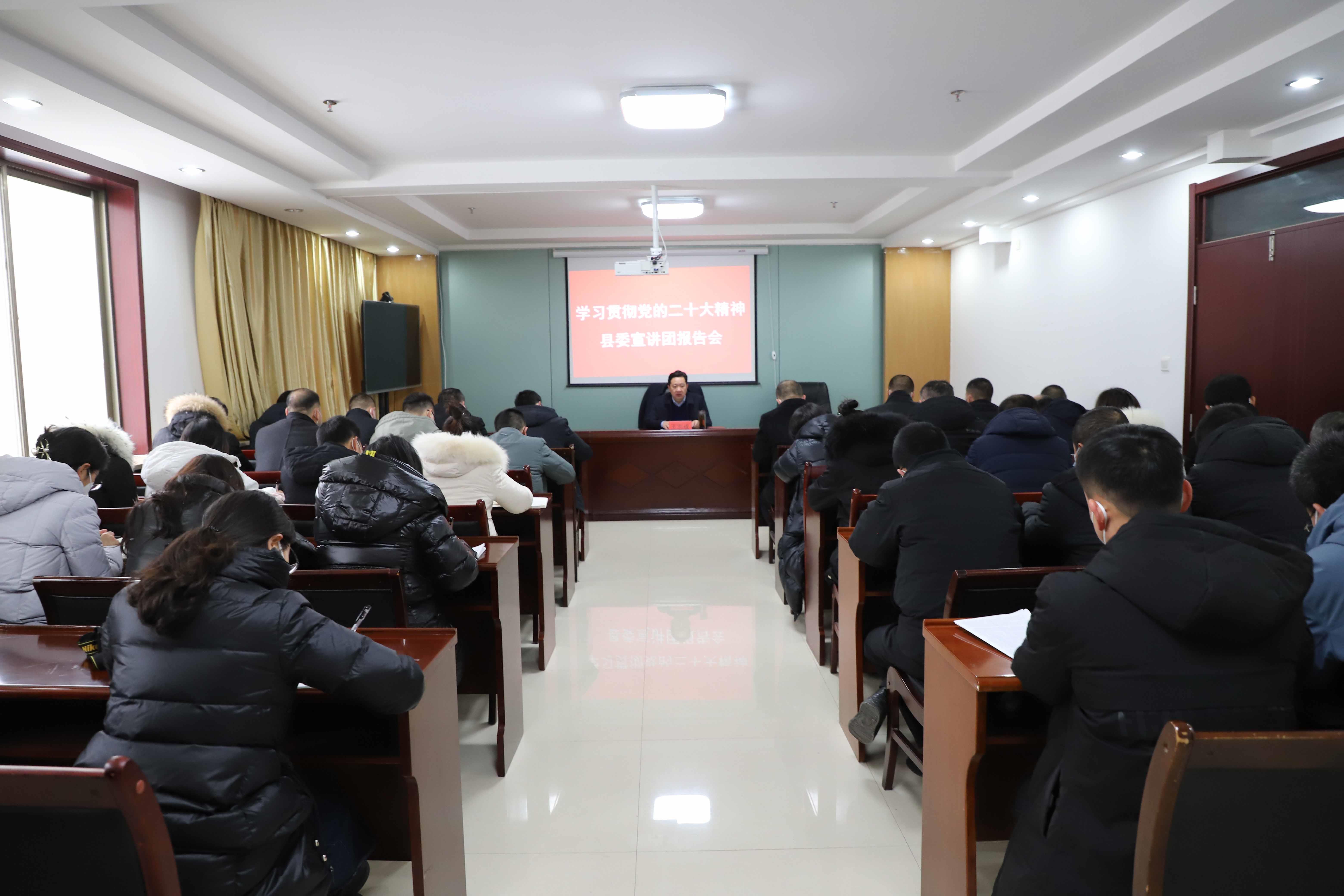 1月16日,县委副书记、县长王志成来到县发改局,为发改、招商系统党员干部职工宣讲党的二十大精神。他强调,要全面学习、全面把握、全面落实党的二十大精神,在学思用贯通上做表率,在知信行合一上走前列,在新征程上谱写发改、招商高质量发展新篇章。