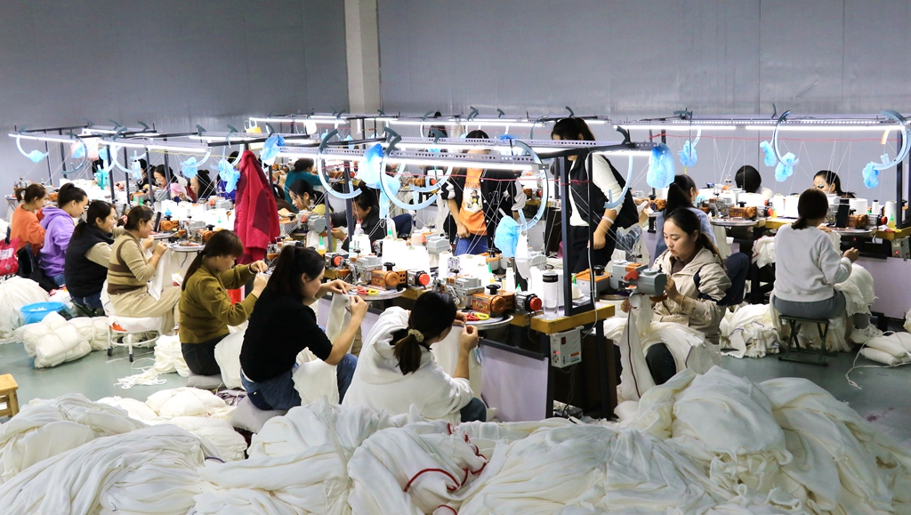 10月6日,记者走进位于武山县工业集中区的天水市千之都服饰有限公司,机器的转动声不绝于耳,工人忙着裁剪缝制衣服,条条生产线忙而不乱。