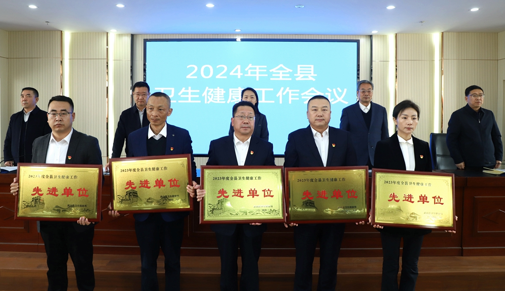 3月12日, 武山县召开2024年卫生健康工作会议,传达学习习近平总书记关于卫生健康工作的重要论述和全国、全省、全市卫生健康工作会议精神,回顾总结2023年全县卫生健康工作,安排部署2024年卫生健康重点任务。县委常委、宣传部部长李玉兰出席会议并讲话,副县长李峰主持会议,县人大常委会副主任骆育喜、县政协副主席邓红兵,县卫健局全体干部职工、各医疗卫生单位负责人及受表彰的先进集体代表和先进个人参加会议。