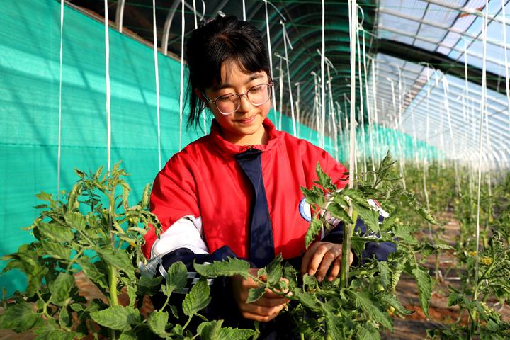 手指触碰西红柿藤蔓,学生王萌洋满心喜悦:“这是我第一次近距离接触食用菌培育和西红柿种植,没想到它们背后竟藏着这么多‘科技密码’。今后我一定努力学习,用所学为家乡农业发展出力。”