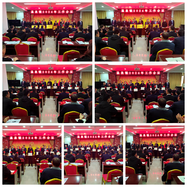 会议传达学习了全县2024年工作会议精神,认真回顾总结了2023年度工作成绩,表彰了2023年度发展壮大村级集体经济先进村3个、2023年度年终综合考核先进集体6个、温泉镇经济社会发展先进单位4个、优秀工作者25名、先进个人12名,5名受表彰先进集体和先进个人代表作交流发言,各领导班子成员对各自分管领域重点工作进行了安排部署,镇党委书记作了总结讲话。