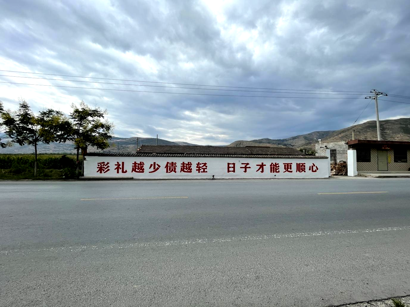 多样宣讲“播新风”,情理法浸润民心。新时代文明实践志愿者化身“婚俗宣传员”,通过“拉家常+讲法律+算细账”的方式,剖析高额彩礼致贫返贫的危害,让“彩礼不是幸福保障”的理念走进千家万户。国道沿线与村落巷道间,“彩礼越少债越轻・日子才能更顺心”等标语醒目亮眼,融入“抬头可见、触手可及”的宣传矩阵,将文明婚嫁理念转化为村民日常可见的视觉符号。