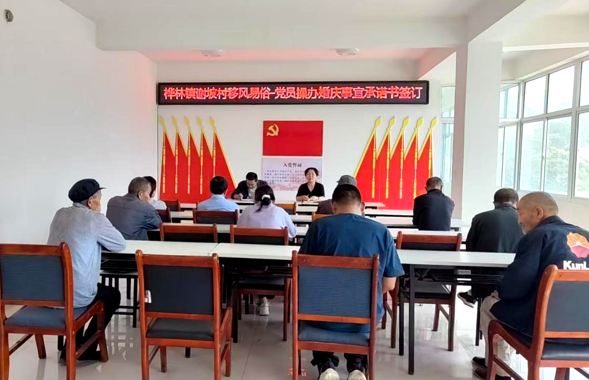 大会共商“定公约”,村民自治聚合力。“婚事新办怎么办?”各村通过党员带动,签订党员操办婚庆事宜承诺书。从“面子账”算到“幸福账”,大家逐步达成“婚事新办”共识,为修订村规民约奠定坚实基础,逐渐将抵制高额彩礼的共识转化为行动自觉。