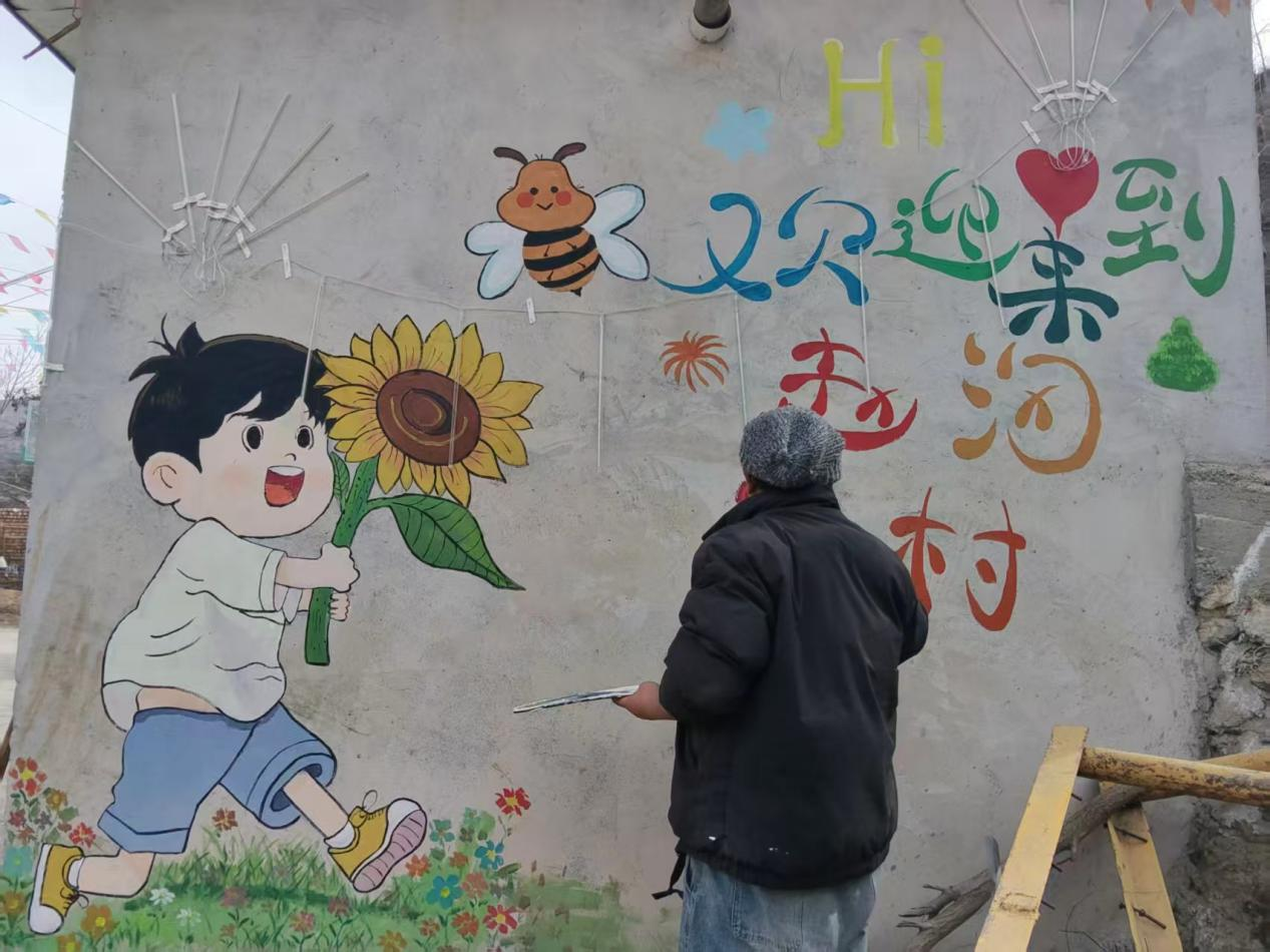 冬日寒风中,志愿者手持画笔、调色盘,扎根村居一线,从构图设计到勾线填色全程细致打磨、精益求精。创作紧扣田园风光、丰收图景、邻里和睦、文明新风、乡村振兴等主题,将本土特色与文明理念有机融合,让原本斑驳老旧的墙面焕然一新,变身传播文明、展示村貌、浸润人心的“移动课堂”与“文化窗口”。一幅幅色彩鲜亮、主题鲜明的彩绘墙沿路铺展,引得村民驻足观赏、交口称赞,文明新风在潜移默化中融入日常、走进民心。