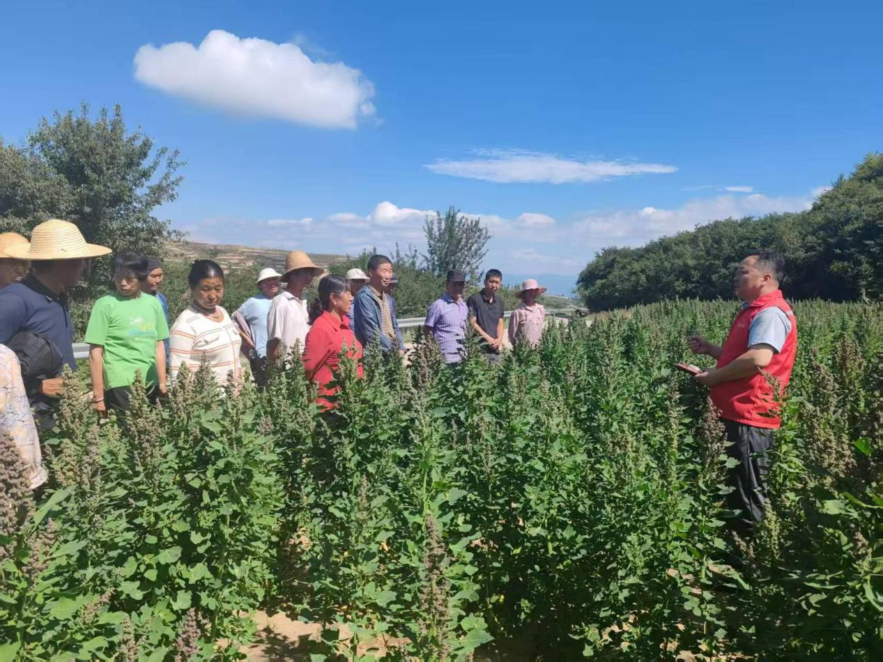 为保障藜麦产业可持续发展,四湾村党支部积极协调资源,邀请县农业技术推广中心专家定期到村开展技术培训,为种植户提供全程技术指导,通过“党支部+合作社+农户” 的模式,由合作社提供种子+收购+销售,全产业链解决农户后顾之忧。“现在不愁种,更不愁卖,收入比以前种玉米、小麦翻了好几番!”说起藜麦种植带来的变化,村民们脸上洋溢着幸福的笑容。