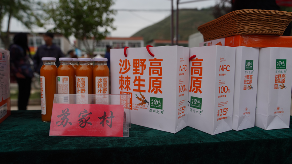 行走在特色农产品展销区,仿佛在翻阅一本榆盘特色产业的“丰收画卷”:河程村晶莹的粉条、苏家村醇厚的沙棘汁与沙棘原浆、下河村醇香的面粉与食用油、四湾村被誉为“高山明珠”的藜麦杂粮、马河村与盘龙村的生态散养鸡与生猪、梁沟村的肥美肉兔,以及即将投产的徐黄村笤帚加工…………这些北纬35°黄金种植带盛产的特色农产品,不再是深藏闺中的“土特产”,而是带动村民增收、充实村集体“钱袋子”的“金招牌”。它们共同诉说着一个事实:榆盘的丰收,是产业兴旺的丰收,是集体经济的丰收。